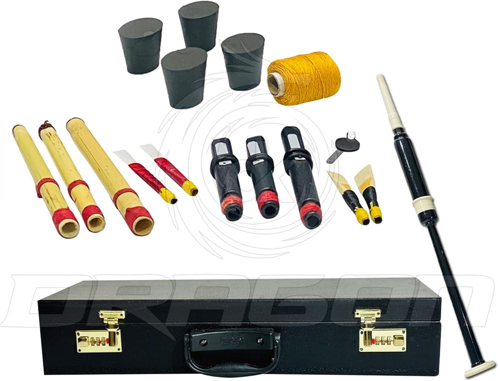 The set includes a range of accessories such as hemp, reeds, mouthpiece, practice chanter, drone, and a Carry Hard Case to keep the bagpipes secure and safe.