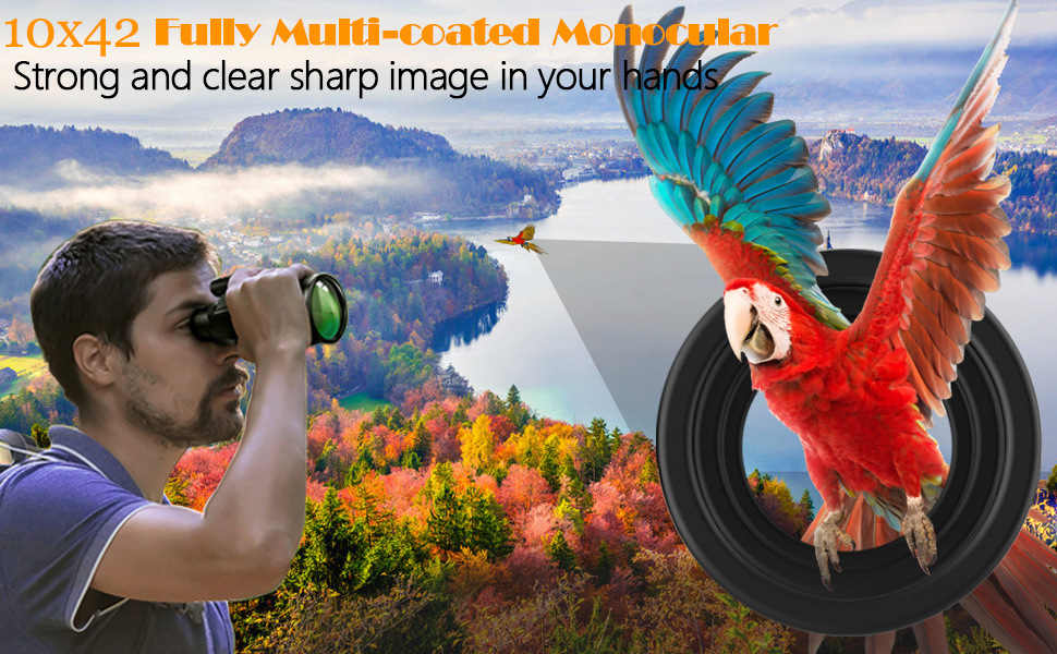 Monocular Telescope,MOCANIO 10X42 Lightweight Monoculars for Adults High Powered Portable Telescope Waterproof Monoculars -BAK4 Prism FMC for Bird Watching Travel Hunting Binoculars Gifts for Men