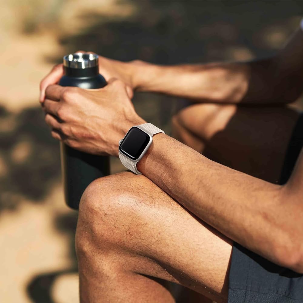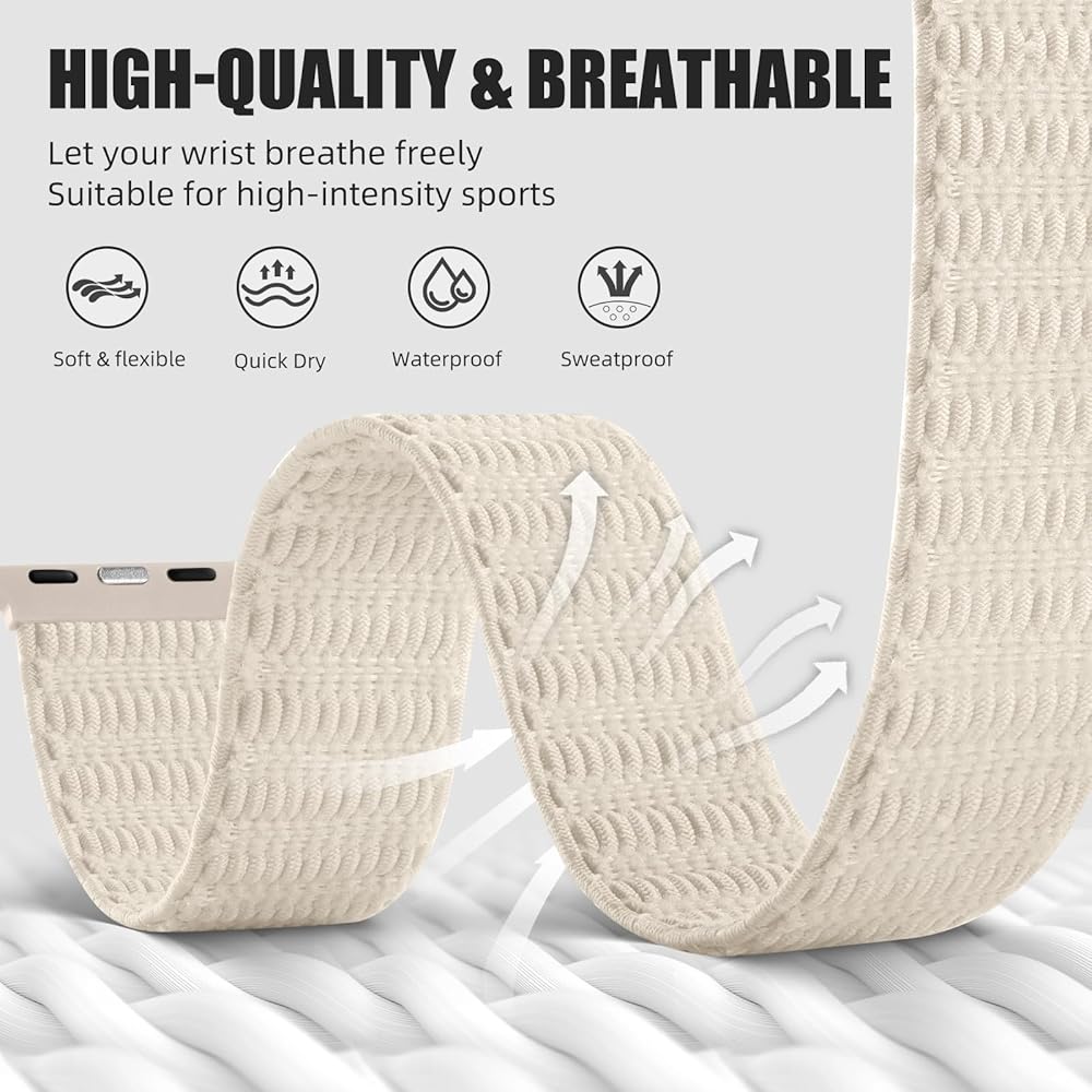 ✅【More Comfortable Touch to Your Skin】 Hamile 2024 upgraded stretchy apple watch band is crafted from premium skin-friendly & environmentally friendly nylon. It uniquely contains natural latex yarn & recycled polyamide, which greatly enhances comfort & breathability over traditional woven nylon straps. It's also softer, lighter and more flexible than other elastic nylon or silicone sport straps, sweat-proof, water-resistant while preventing skin irritation