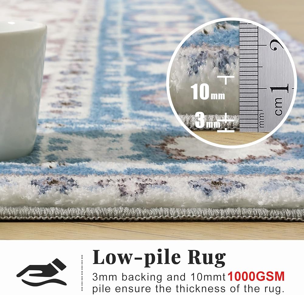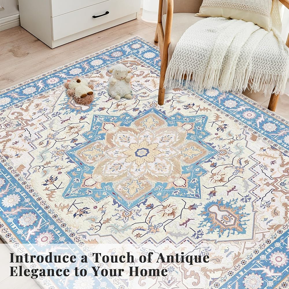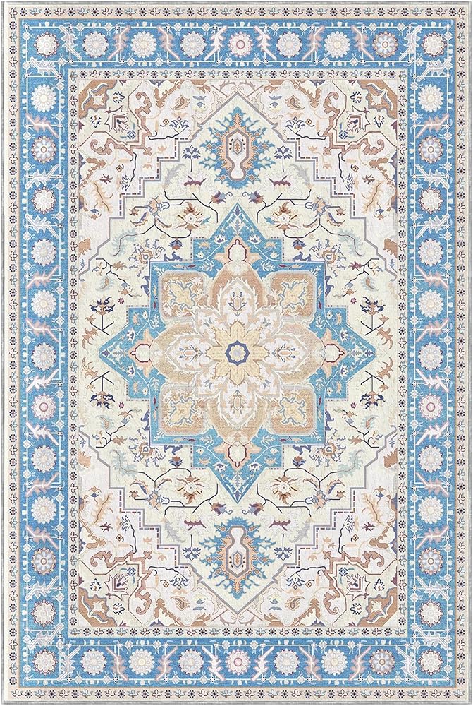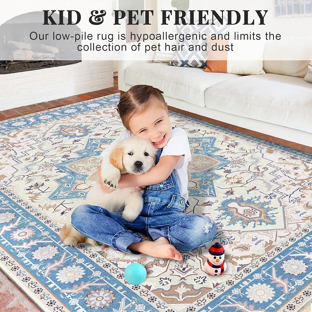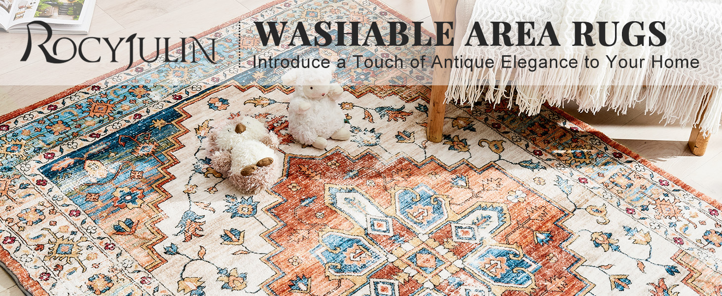 [A Good Play Space for Kids And Pets]: ROCYJULIN machine washable area rugs are free of harmful materials, and perfect for those with children or pets. Our low pile persian rugs for bedroom is hypoallergenic and limits collection of pet hair and dust, reduce your worries about your loved ones.