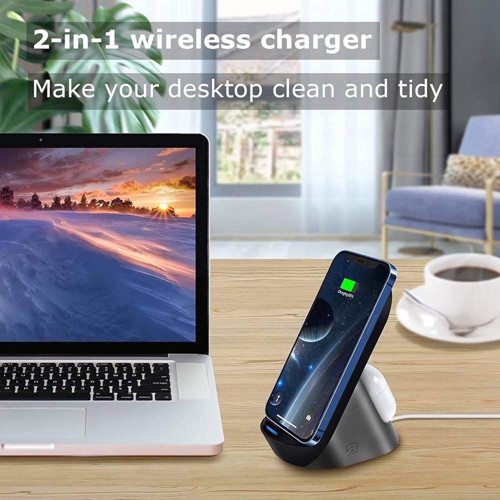 Wireless Charger, 2 in 1 15W Dual Fast Wireless Charging Stand Station for AirPods 2/Pro, iPhone 15/15 Plus/15 Pro Max/14/13/12 Pro Max/11/SE/XS/XR/XS Max/X/8 Plus,Samsung Galaxy S23,S22,S21,S20,S10