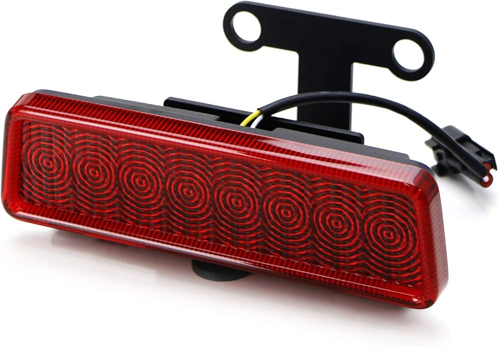 LED brake lamp powered by 8 pieces super bright LED lights, with F1 racing inspired 5-quick blinks and then solid, when you hit on the brake (see video)