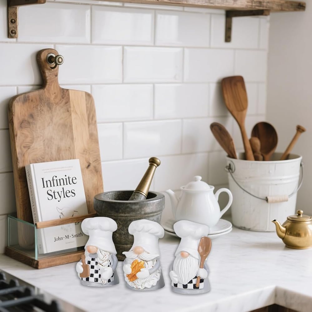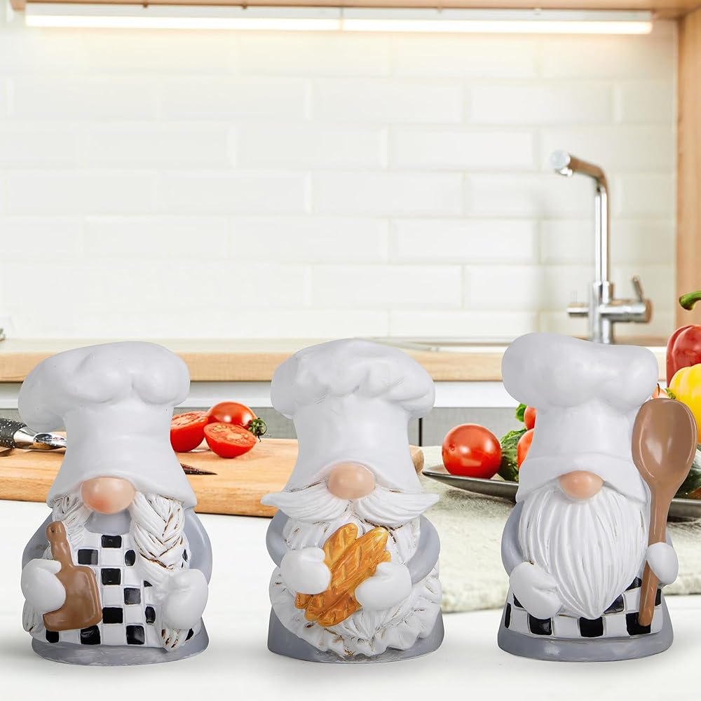 Explore our Chef Gnome Decor, bringing unique and practical charm to your kitchen. Each gnome features a stylish black and white apron design, showcasing a perfect blend of professionalism and artistic taste. More than just seasonal decor, these gnomes are an ideal choice for functional kitchen ornamentation. Crafted by professional designers, the sculptures turn each gnome into a unique and enchanting piece of art. A perfect gift for baking enthusiasts, infusing your kitchen space with a lively and creative atmosphere. Choose Chef Gnome Decor to transform your kitchen into a unique space where food and art seamlessly come together.