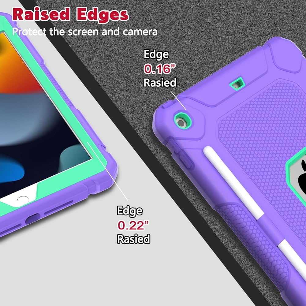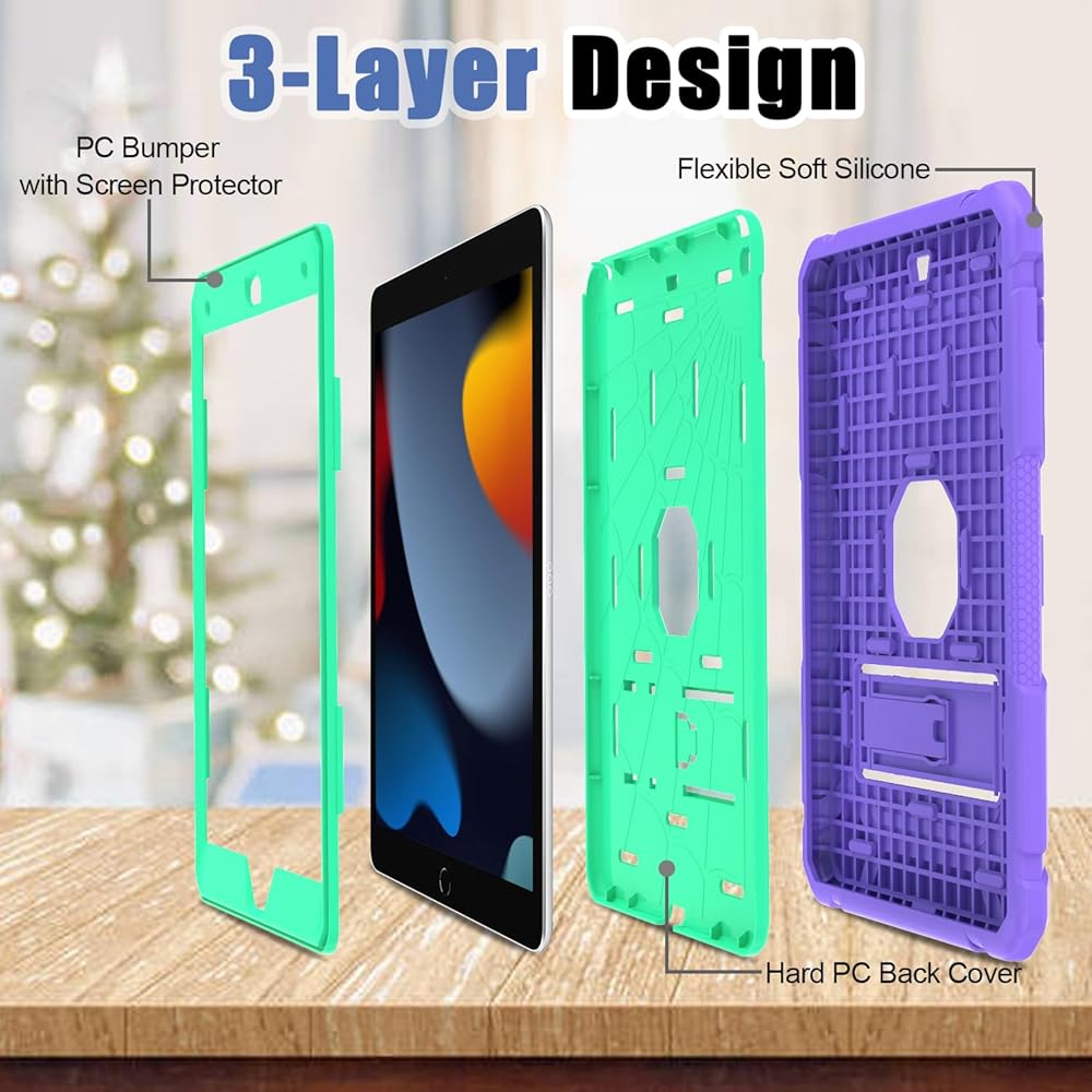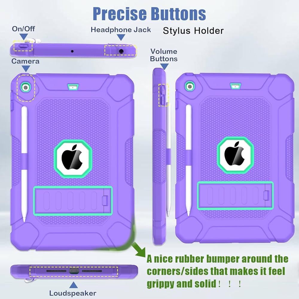 【Full Body Protection】The iPad 10.2 inch case is made from 3 layers, including hard plastic shell, hard PC cover and soft shockproof silicone rubber. There is a nice rubber bumper around the corners/sides that makes it feel grippy and solid. It will provide full-body heavy duty protection for your iPad against accidental drops, scratches, shocks, bumps and dirt.