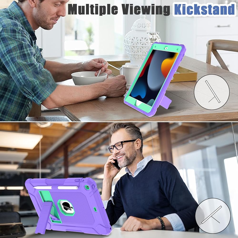 【Amazing Mutifunction Rotating Kickstand】iPad 9th/8th/7th Gen case, the 360 Degree rotating Kickstand provides multi-angle viewing, offering you a easy convenience for watching, working and typing. The stand on the back gives it strong support and frees your hands.