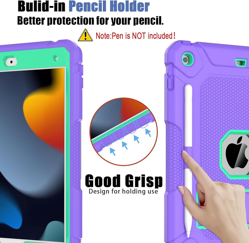 【Built-in Pencil Holder】The compact pencil holder design can hold your Apple pencil 1st generation (Need Apple USB-C to Apple Pencil Adapter) tightly when you don't use it. No need to worry it will fall off. (Stylus Pen is NOT Included)