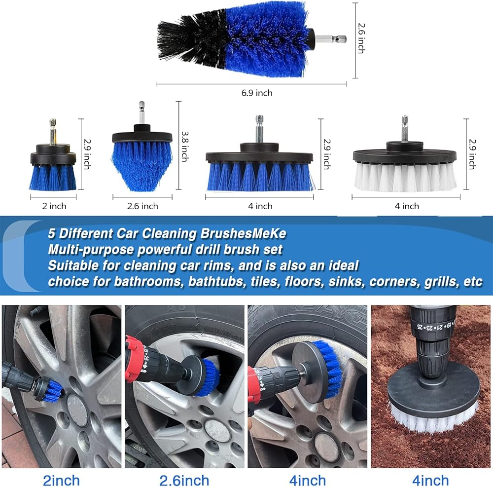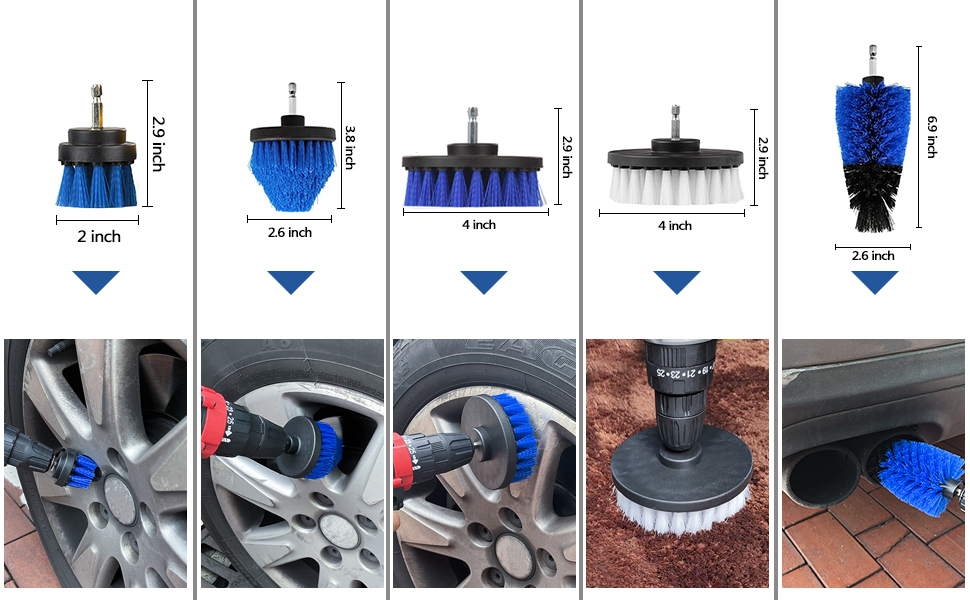 Clearning Drill Brush Attachment Set - Come with 5 different stiffness and shapes drill brushes, simply attach to any cordless drill or impact driver and become a powerful cleaning tool, Get stubborn cleaning jobs done more efficient, save your time and effort.