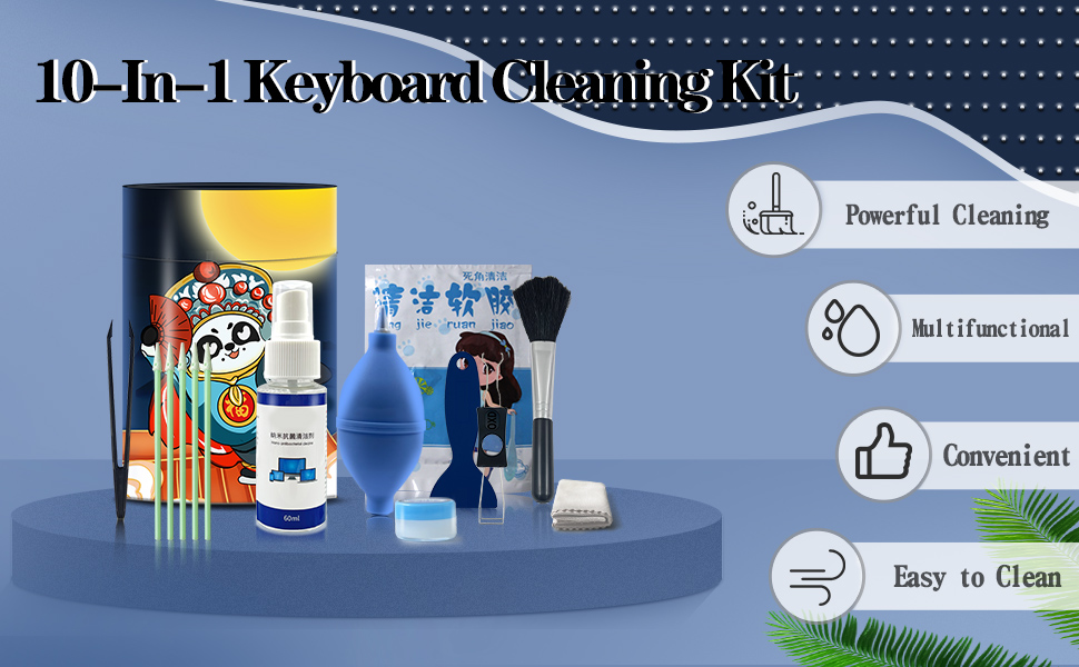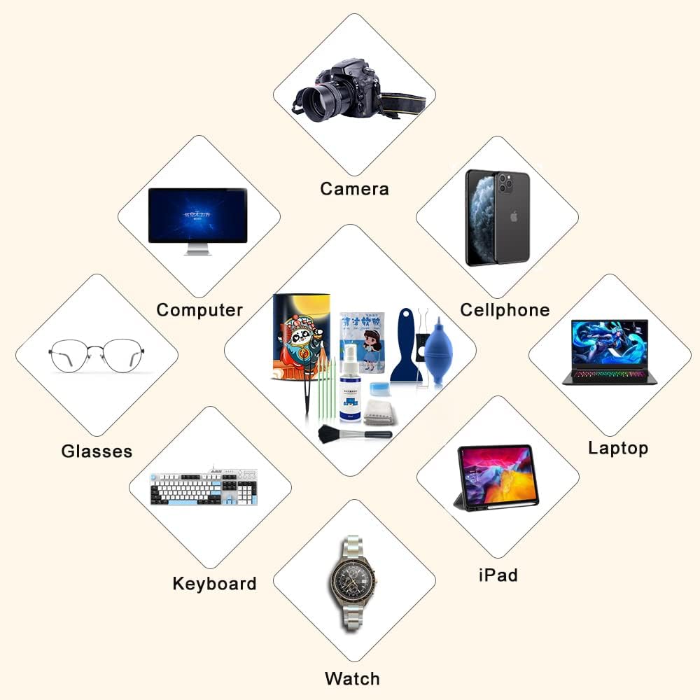 ♥♥♥Still worrying about your dirty laptop, glasses lens, calculator, Tel, camera lenses or mechanical gaming keyboard? This 10-in-1 professional cleaning kit will help you remove the dust, dirt, and hair to give your electronic devices a fresh and clean.