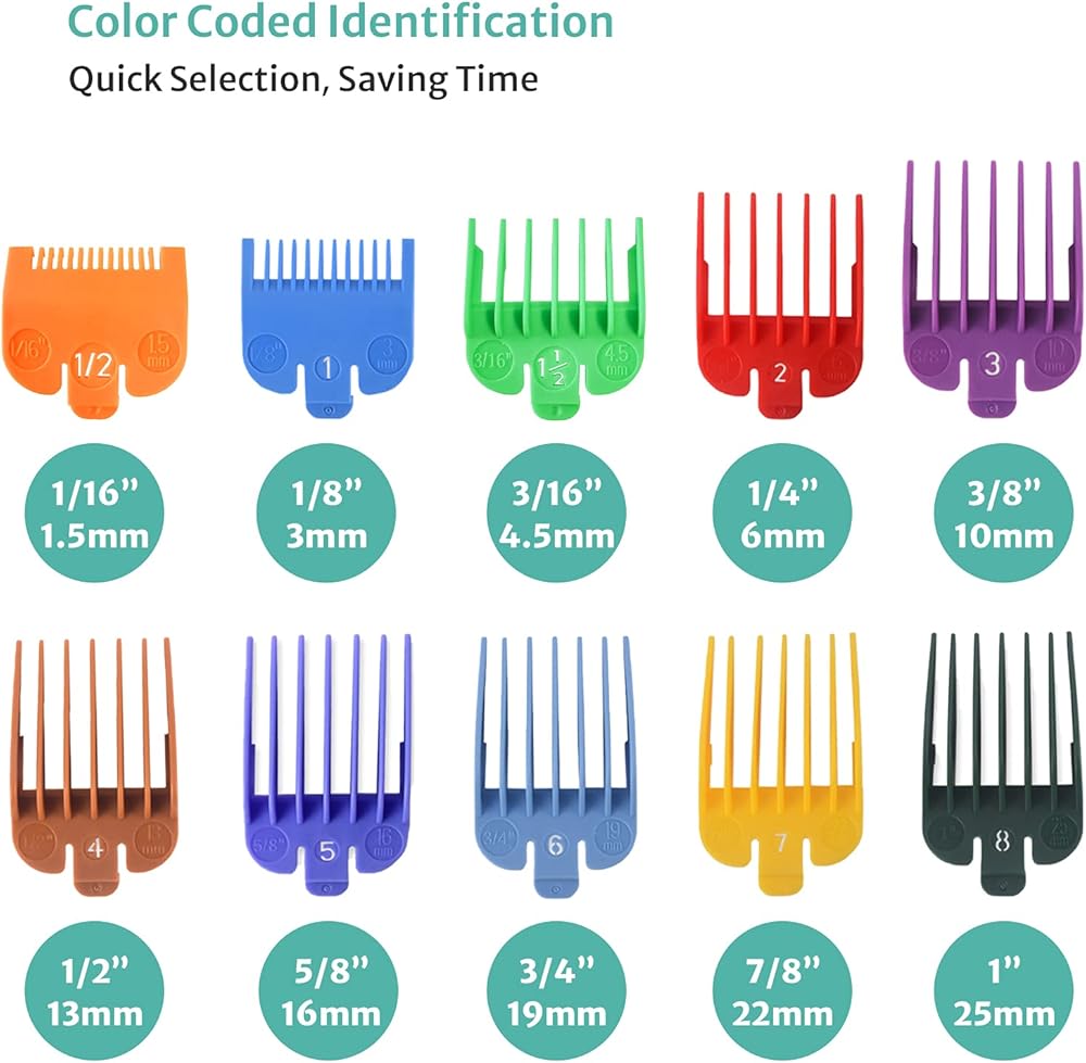 Color Coded: Each guards with a different color and different cutting lengths. Grab quickly based on the identity of color.