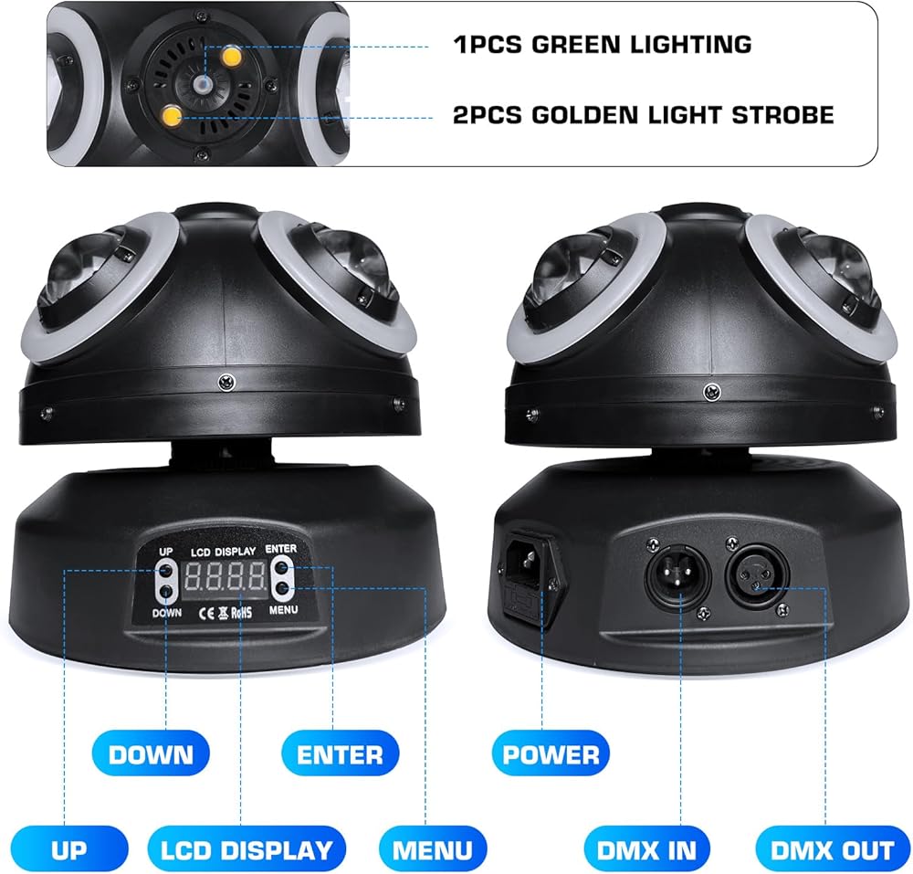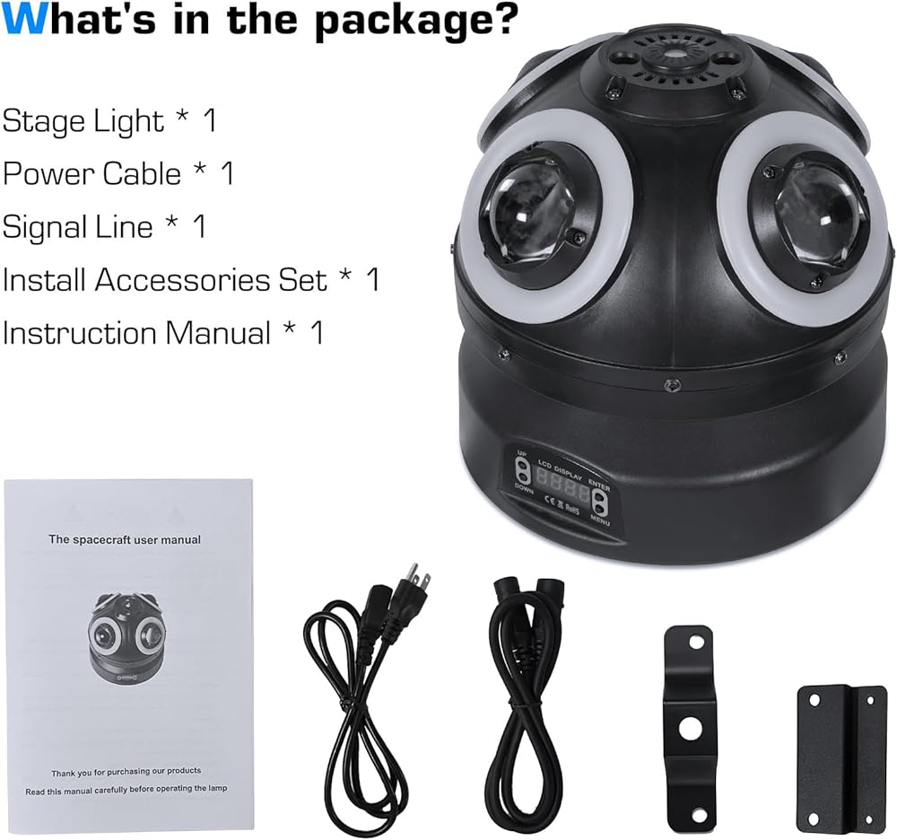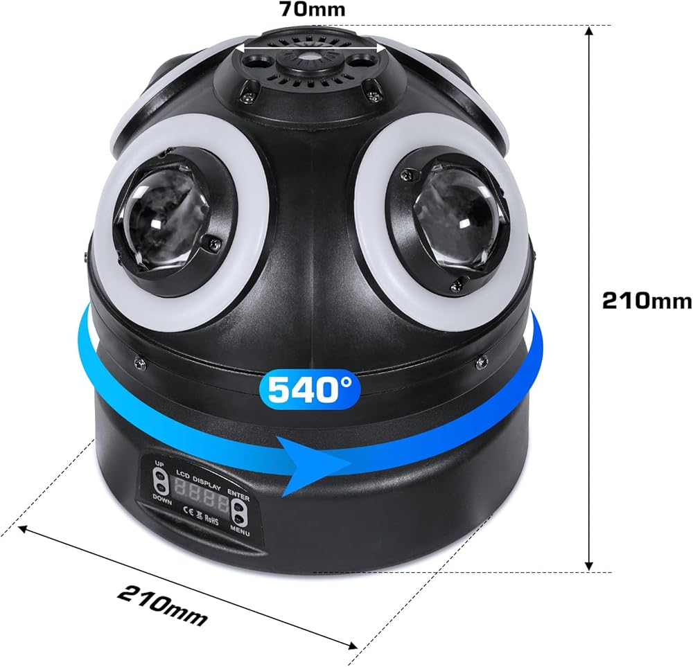 🎅【 Advanced Control Options】 Equipped with DMX 512 13CH protocol, the dj lighting can be easily controlled using standard DMX512 devices. The lights can operate in various modes, including self-propelled, voice-activated, master-slave, and DMX, providing flexibility for different performance needs. The X-axis rotation of 540° allows for wide coverage and versatile lighting effects.
