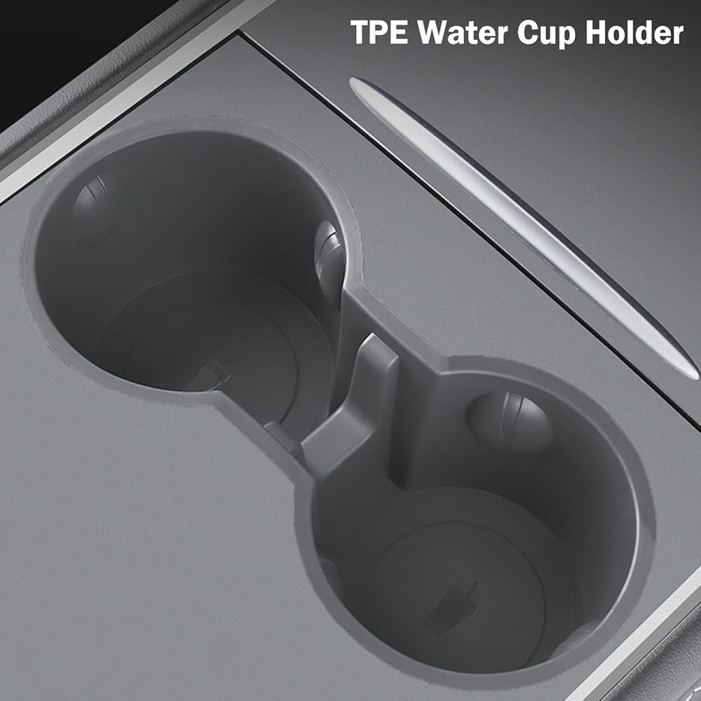 Specification: Material TPE. Carefully designed to fit the Center Console Slot Slip perfectly. Model 3 cup holder, Model Y cup holder compatible with 2017 2018 2019 2020 2021 2022 2023 Tesla Model 3, 2021 2022 2023 2024 Tesla Model Y.