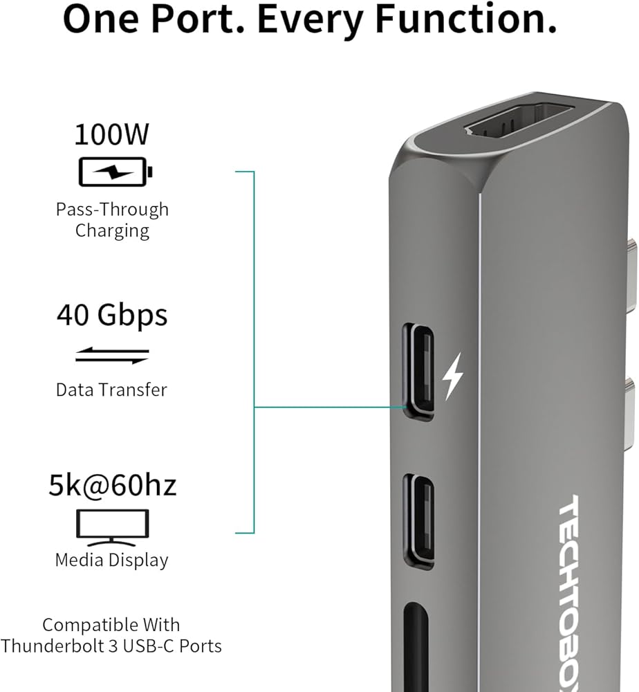 MacBook Usb Adapter (7 in 1) expand your MacBook Pro ports into 2 USB3.0 + HDMI(4K@30Hz)+ 1 Thunderbolt 3 + 1 Type-c and SD/TF card reader. Suitable for MacBook Pro/Air 13 14 15 16 inch 💡Please Note: This adapter is not suitable for wearing a protective case