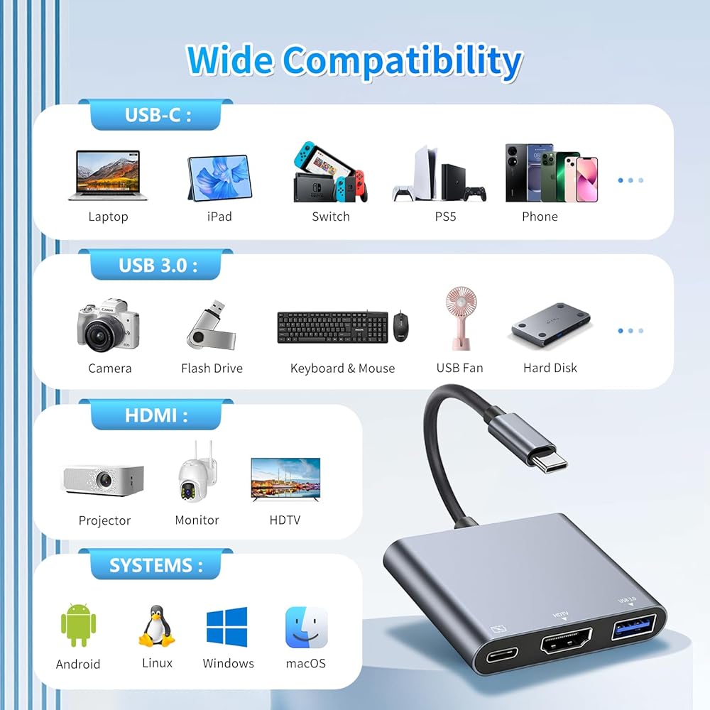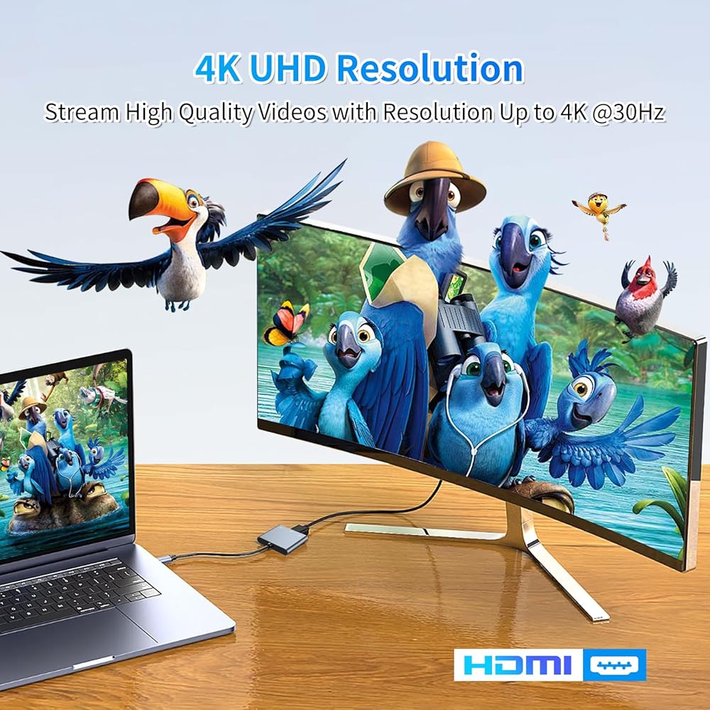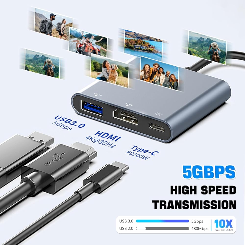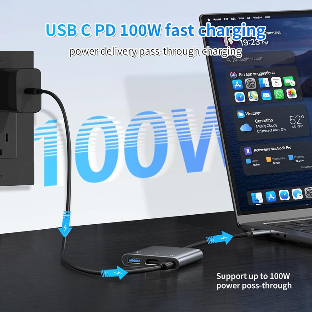 USB to USB C Adapter Hub,4k USB C to HDMI,Hdmi Splitter to Usbc Multiport Digital AV Converter,USBC to Hdmi Adapter,With100w Pd,3.0 Port,for MacBook Pro/Air, Ipad, Monitor and Usbc Devices-Space Grey