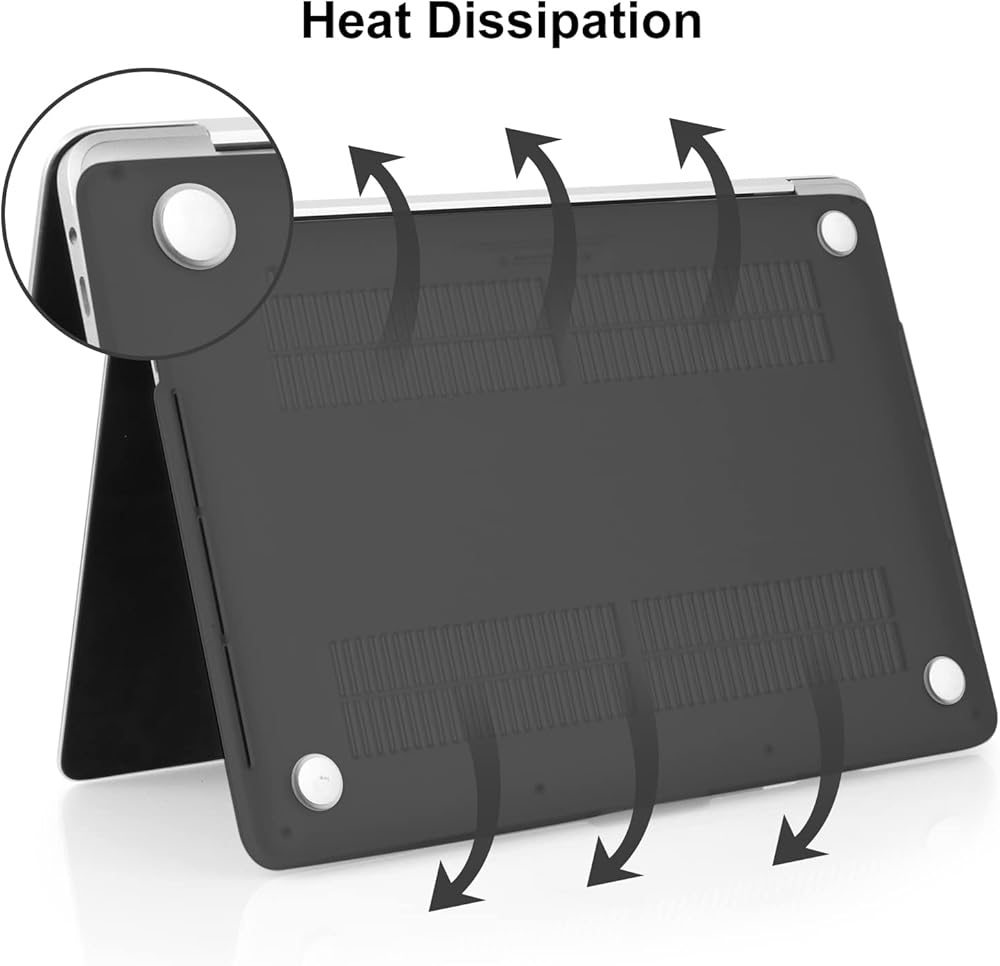 Fully Access & Fully Vented: Plug your charger, cable or headset without removing the case. Fully vented holes that will ensure your devices have good heat dissipation. The added case still makes it easy to open your macbook.