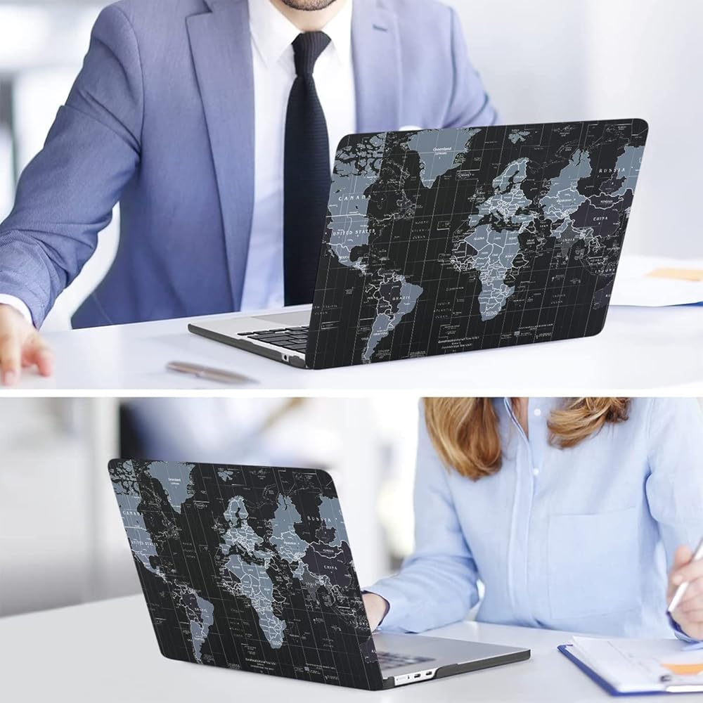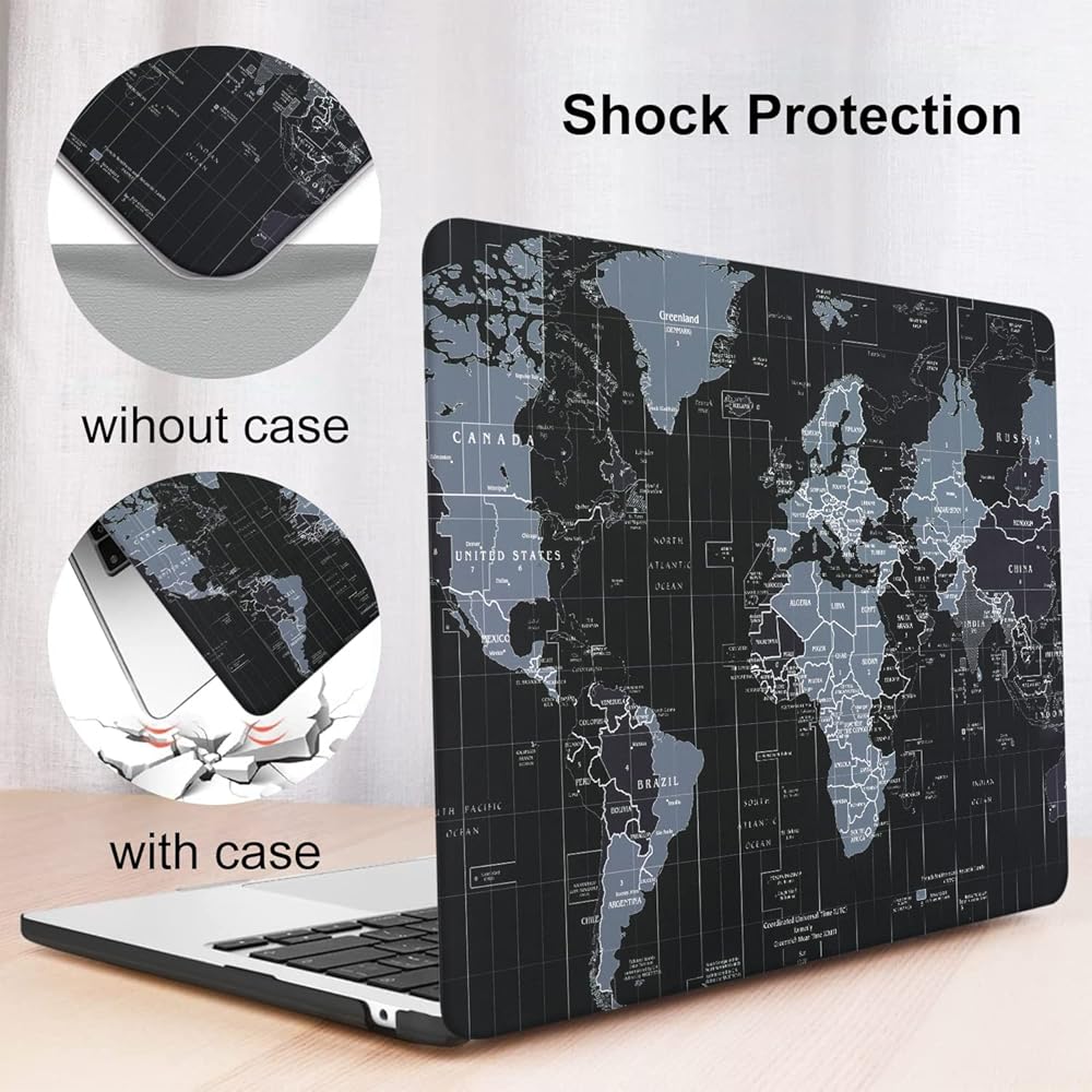 iLeadon for MacBook Air 13.6 inch Case 2022 Release A2681 M2, Hard Shell Case + Keyboard Cover + Screen Protector for Mac Air 13inch with Liquid Retina Display Touch ID, Black World Map