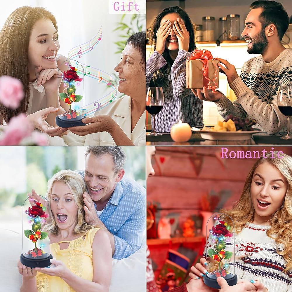 Musical Forever Rose Gifts for Her: 4 different styles of music, bringing best wishes and love. Roses represent love. Roses will never wither, which means your eternal blessing and love to your mother. The rose is protected by a glass dome, signifying constant companionship and guardianship. Long press the power to turn off, lightly press the power to switch music, different music represents different love.