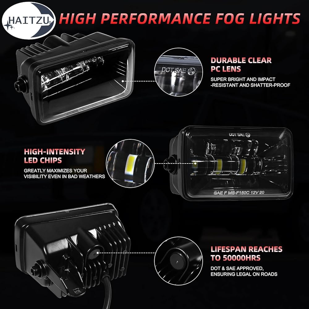 【High Quality】Durable construction fog lights for Fo F150, use anti-crash PC Lens which are very important for fog lights. Fully sealed, IP67 waterproof rate, quick cooling aluminum alloy heat sinks and high-quality heat conduction silicone gel can effectively extend the lifespan of the led fog lights to over 50,000 hours.