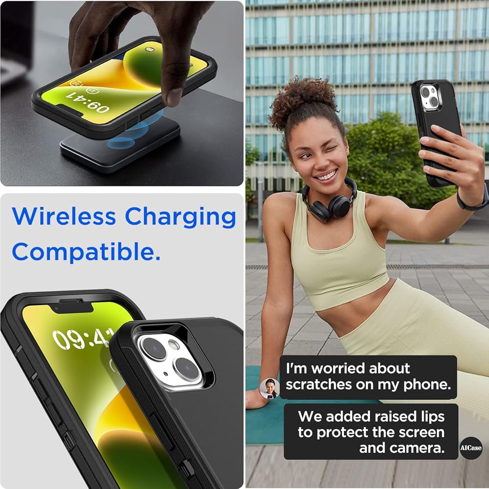 AICase for iPhone 14 Case(6.1") with Glass Screen Protector,Heavy Duty Drop Protection Full Body Rugged Shockproof/Dust Proof Military Protective Tough Durable for iPhone 14 6.1"_1