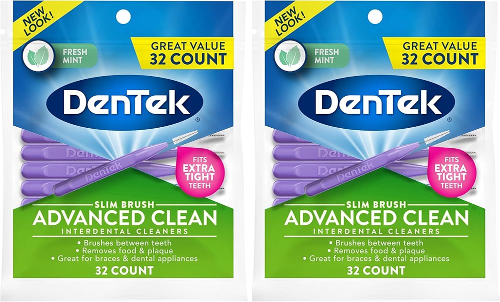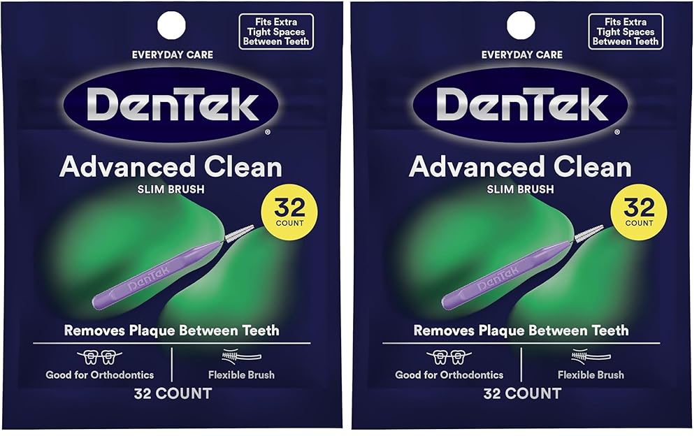 DenTek Easy Brush Advanced Clean Interdental Cleaners standard fit brush makes it easy to brush the hardest-to-reach spaces between teeth. In addition to a great clean, you're getting an advanced brush that includes the following features: tapered brush, flexible wire and flexible grip. The tapered brush helps clean tight spots and is great for braces, implants, bridges, crowns and other appliances. A flexible wire allows the soft bristles to bend during cleaning. Interdental brush has advanced fluoride coating and Mouthwash Blast Mint flavor. The nonslip handle flexes to hold positions when bent. The cleaners come with an antimicrobial cap that helps keep brush clean between uses. All DenTek Interdental Cleaners remove food and plaque, reduce tooth decay and fight bad breath. Go beyond brushing with DenTek! Help preserve and protect your teeth for a lifetime with DenTek's innovative dental care products.