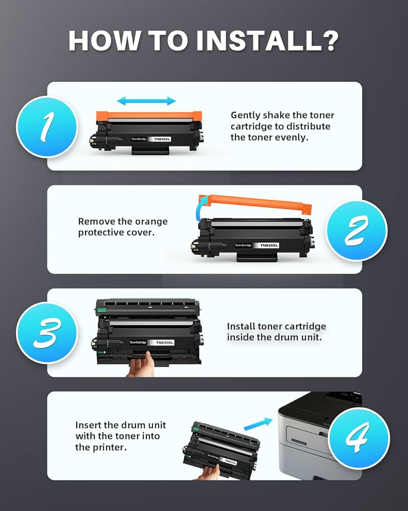 - 【Package Content】 2 x Black TN830XL Toner Cartridges and 1 x Instruction Guide