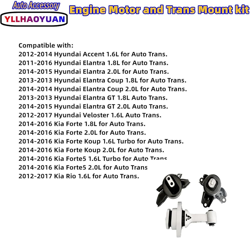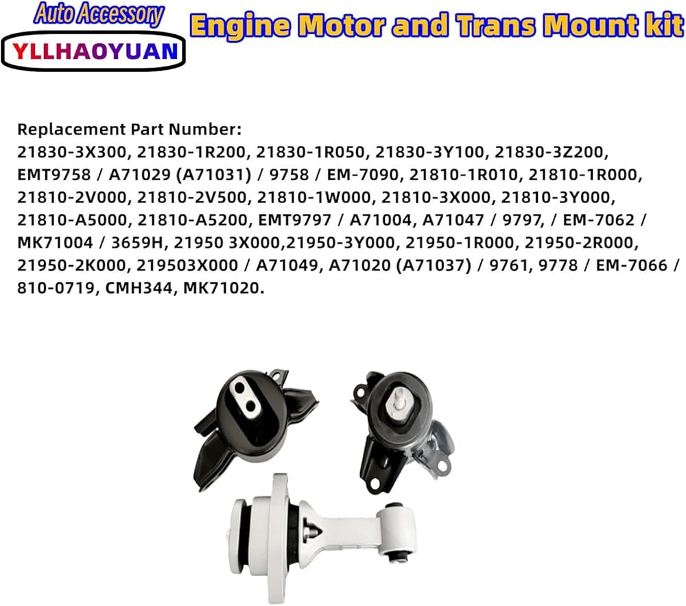 • Notice:Please use Amazon's Your Garage feature above to see if this part is compatible with your vehicle! confirm whether engine motor and trans mount are suitable.DO NOT USE AIR GUN OR ANY POWER TOOL WHEN INSTALL MOTOR AND TRANSMISSION MOUNT, ONLY USE HAND TORQUE TOOL TO TIGHTEN THE NUTS AND BOLT TO AVOID DAMAGE TO PARTS.