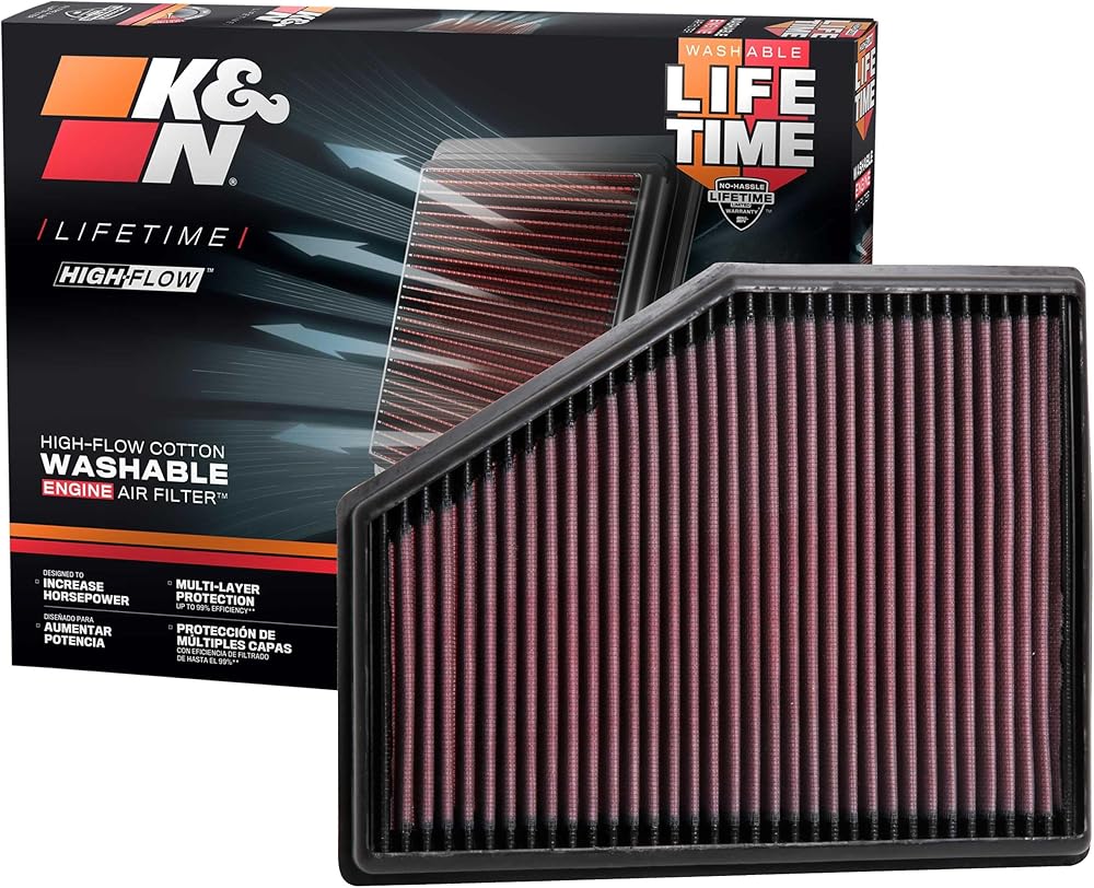 K&N High-Flow Original Lifetime Engine Air Filter: Increase Power: Premium, Washable: Compatible with 2015-2024 BMW: (See Product Description for Select Models) 33-3079