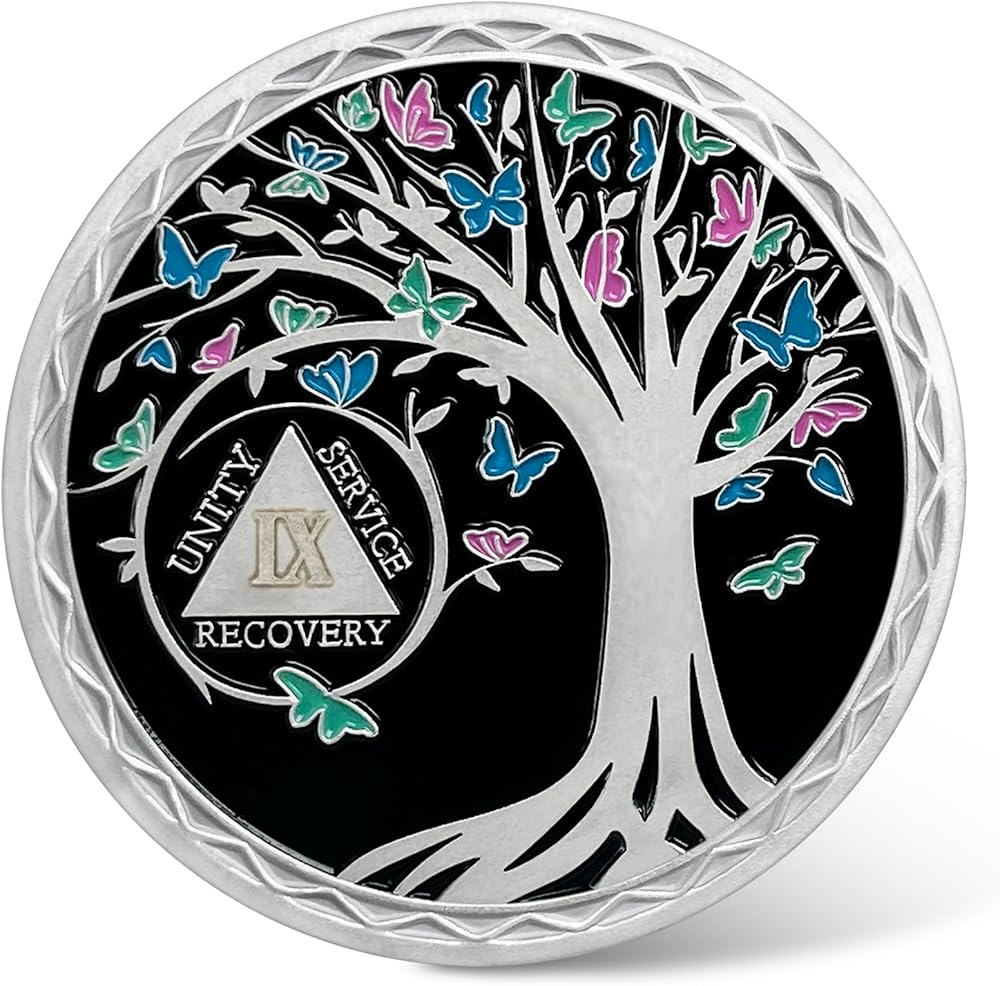 9 Year Sobriety Coin - Recovery Butterfly Tree of Life AA Coins - Nine Year AA Chips and Medallions - 1-20 Prime Sobriety Chip Alcoholics Anonymous Gifts for Men Women