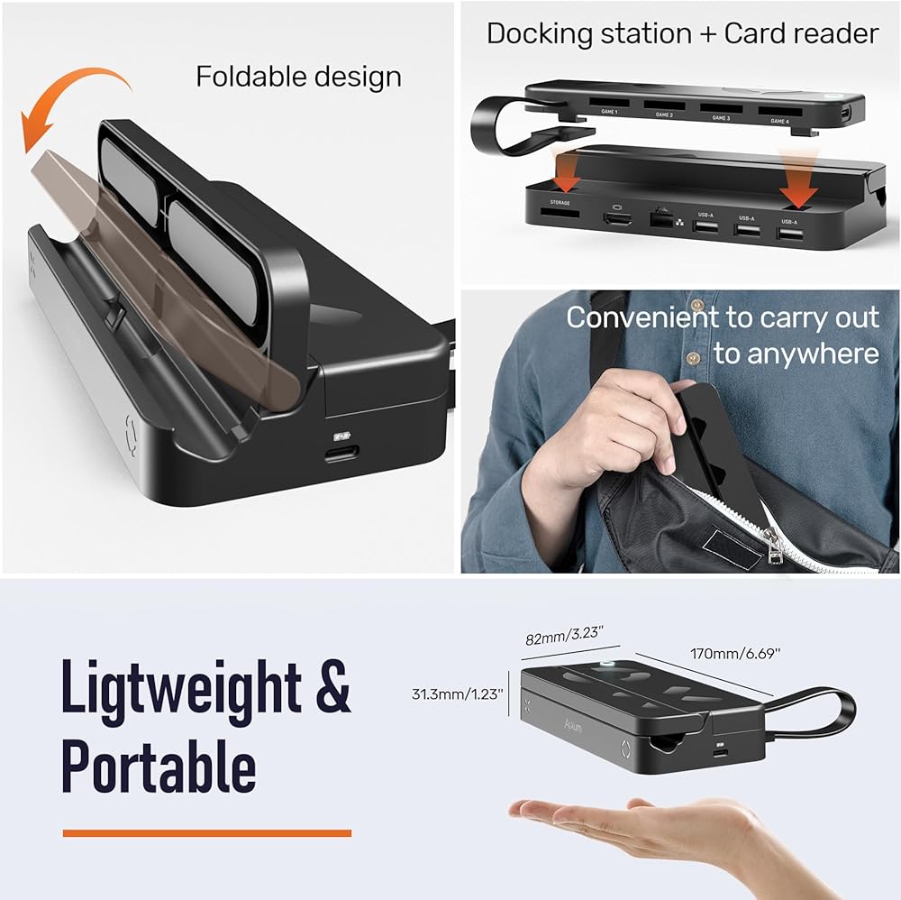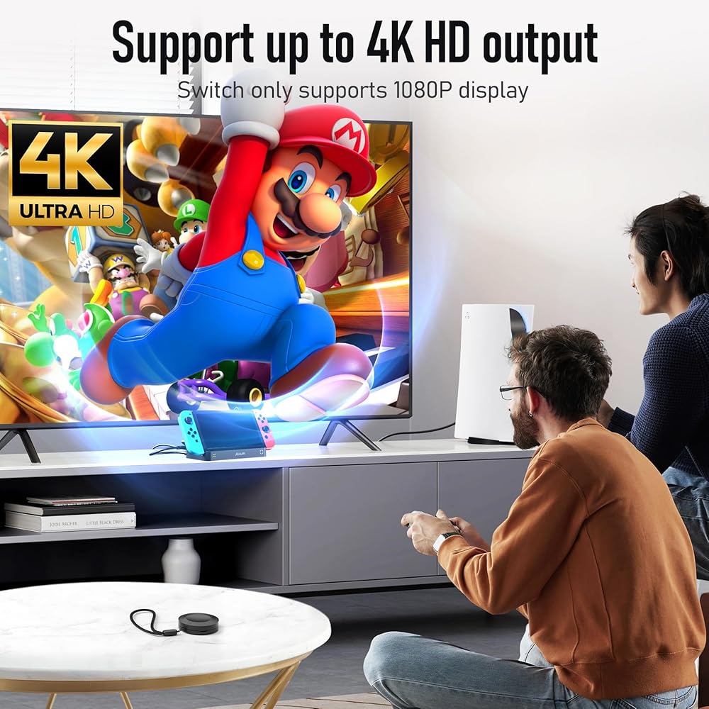 Foldable switch docking station for TV: Alxum Nintendo Switch TV dock supports folding storage, simple and beautiful. Alxum switch docking station HDMI 2.0 supports up to 4K30Hz and is backward compatible with 1080P, etc. Please notice SWITCH only supports 1080P output, also Supports HDCP 1.3/2.2/2.3, and supports HDR10 and HDR12; Alxum Switch TV dock RJ45 interface adapts to 10/100/1000Mbps Ethernet network transmission, compliant with IEEE 802.3, 802.3u and 802.3ab; supports IPv4/IPv6.