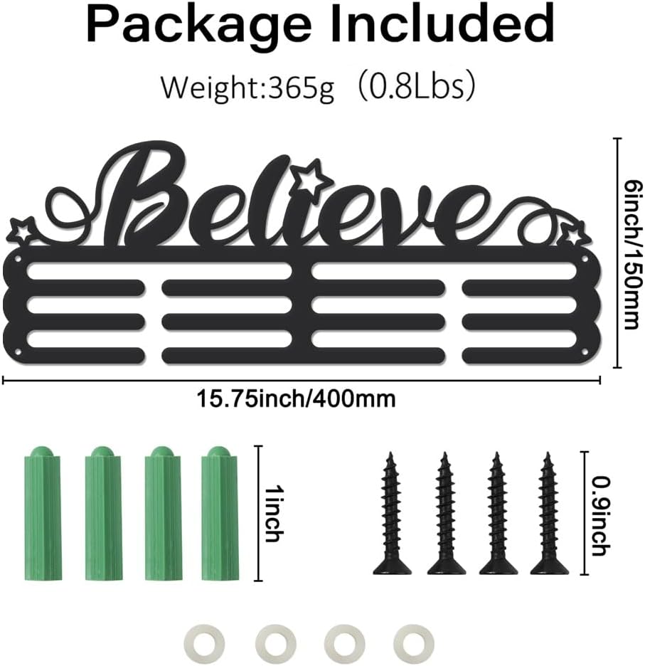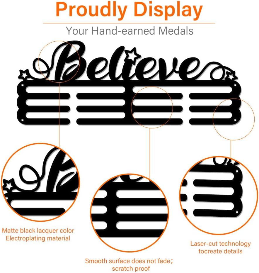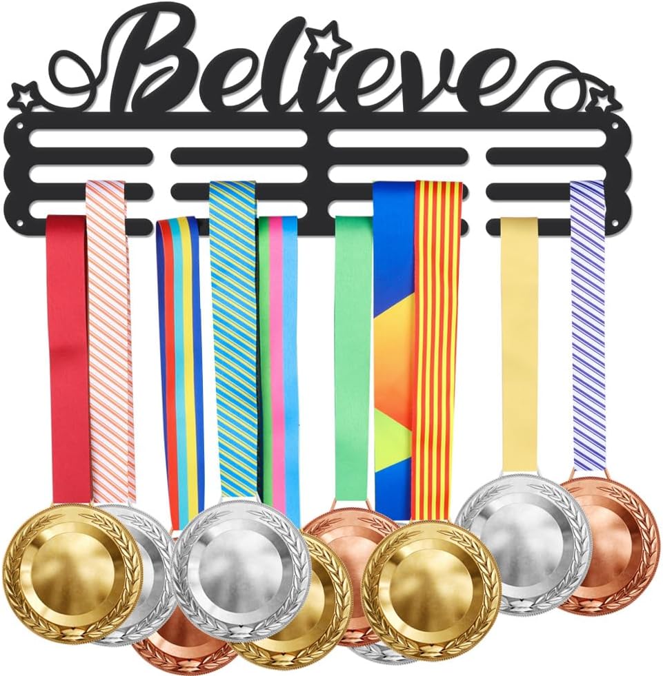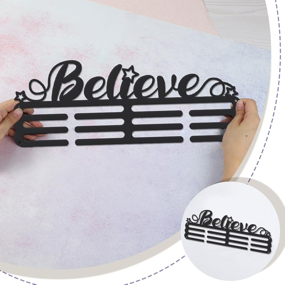 SUPERDANT Believe Medal Hanger Holder Motivational Medal Display Rack with Stars Iron Hook Rack Frame Medal Awards Motivational Kids & Adults Running Sports Medal Hanger
