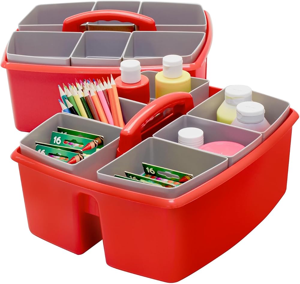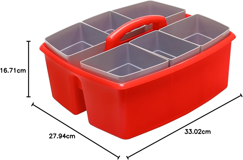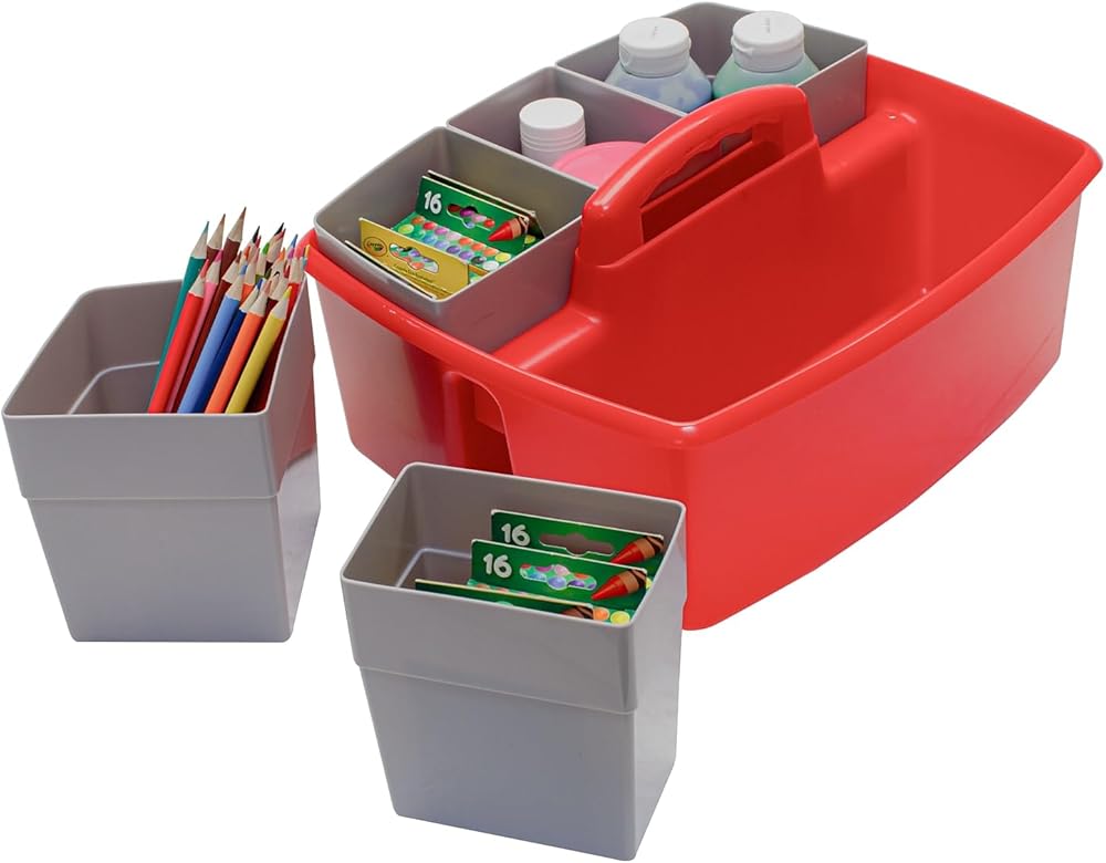 Storex Large Classroom Caddy with Cups, 13 x 11 x 6.575 Inches, Red, Case of 2 (00981U02C)
