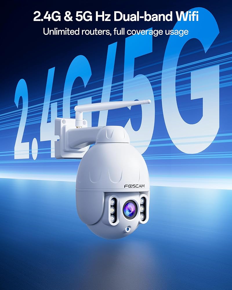 【Stable 2.4/5GHz WiFi Connection】Foscam ip camera offers 2.4/5GHz WiFi,You can choose different frequency bands of WiFi according to your needs. 2,4GHz wifi connection is more stable, but the speed is slower. 5GHz wifi is faster, but the connection is not as stable as 2,4GHz.