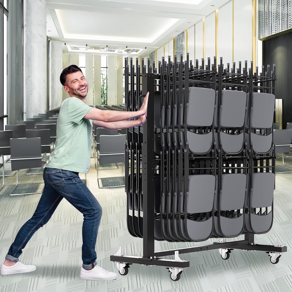 WIDE APPLICABLE SCENARIOS —Two-Tier folding chair rack cart is a must-have tool for churches, community centers, schools, recreational facilities, training and conference rooms. A practical solution for fast set up and break down of folding chairs with no physical strain, its unique hanging design offers convenience and flexibility.