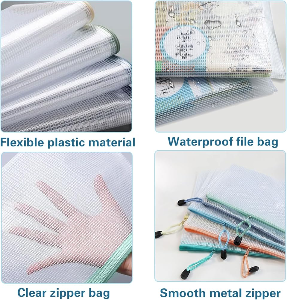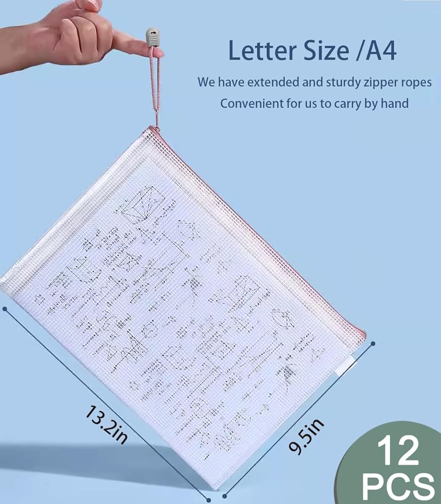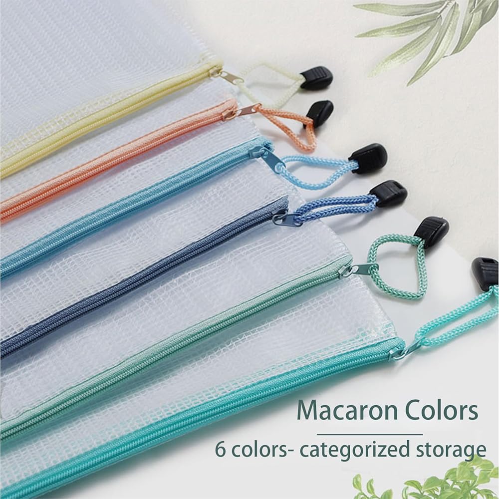 12-Pack A4 Size Mesh Zipper Pouch Bags with Lanyard Design | Perfect for Organizing & Protecting Documents and Items | Waterproof Zip Bags for Storage | Comes in 6 Vibrant Colors