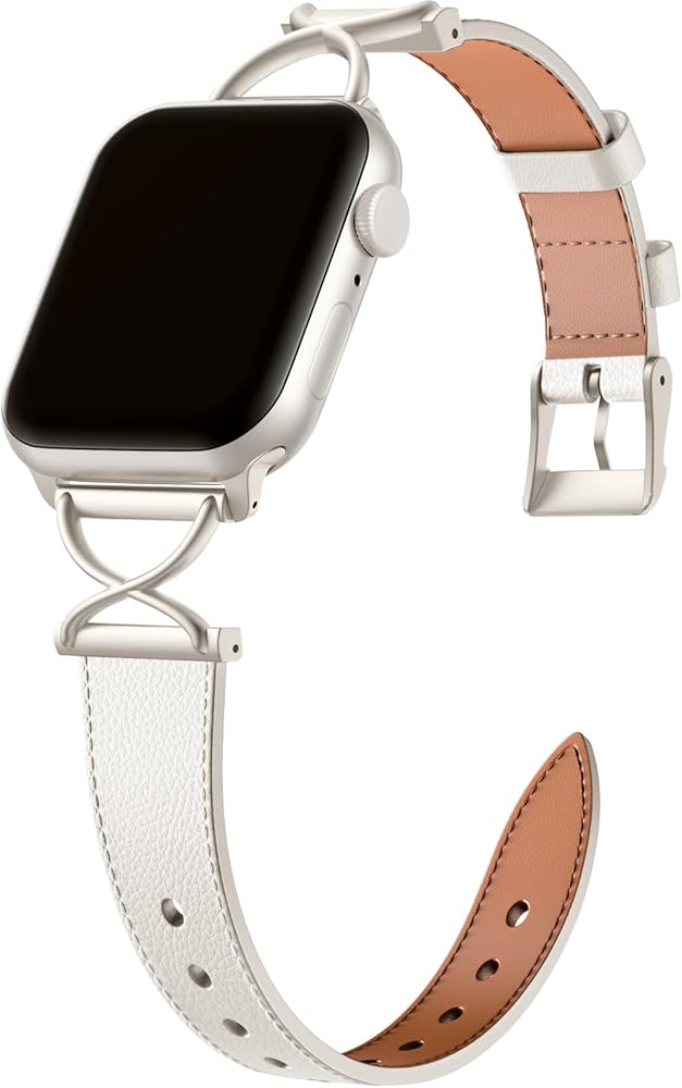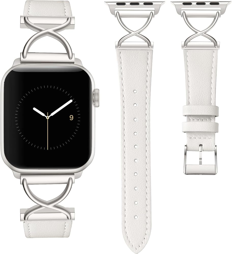 Band Compatible with Apple Watch Bands 41mm 40mm 38mm 44mm 45mm 42mm 49mm Women, Slim Thin Genuine Leather Classic Strap with X-Shape Metal for iWatch Bands Series 9 8 7 6 5 4 3 2 1 SE Ultra