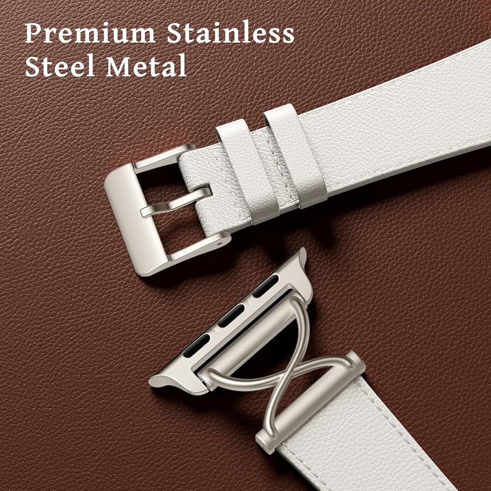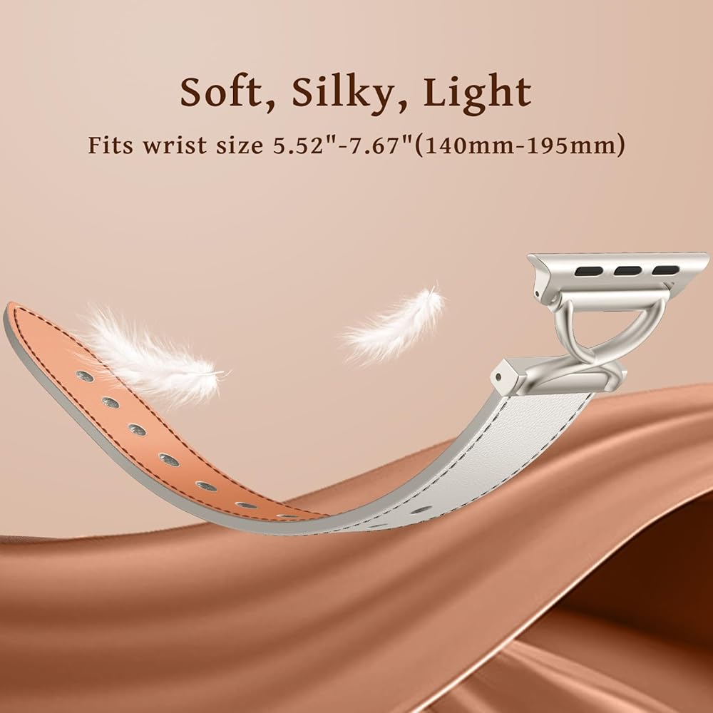 【Crafted with Exquisite Precision】Our slim leather apple watch bands for women are manufactured to showcase meticulous attention to detail that you can both see and feel. Every aspect, from the stitching to the contours, reflects our commitment to quality. This results in a watch strap that boasts not only a striking appearance but also offers exceptional comfort when worn. Elevate your style with the perfect fusion of artistry, a genuine representation of the craftsmanship you deserve