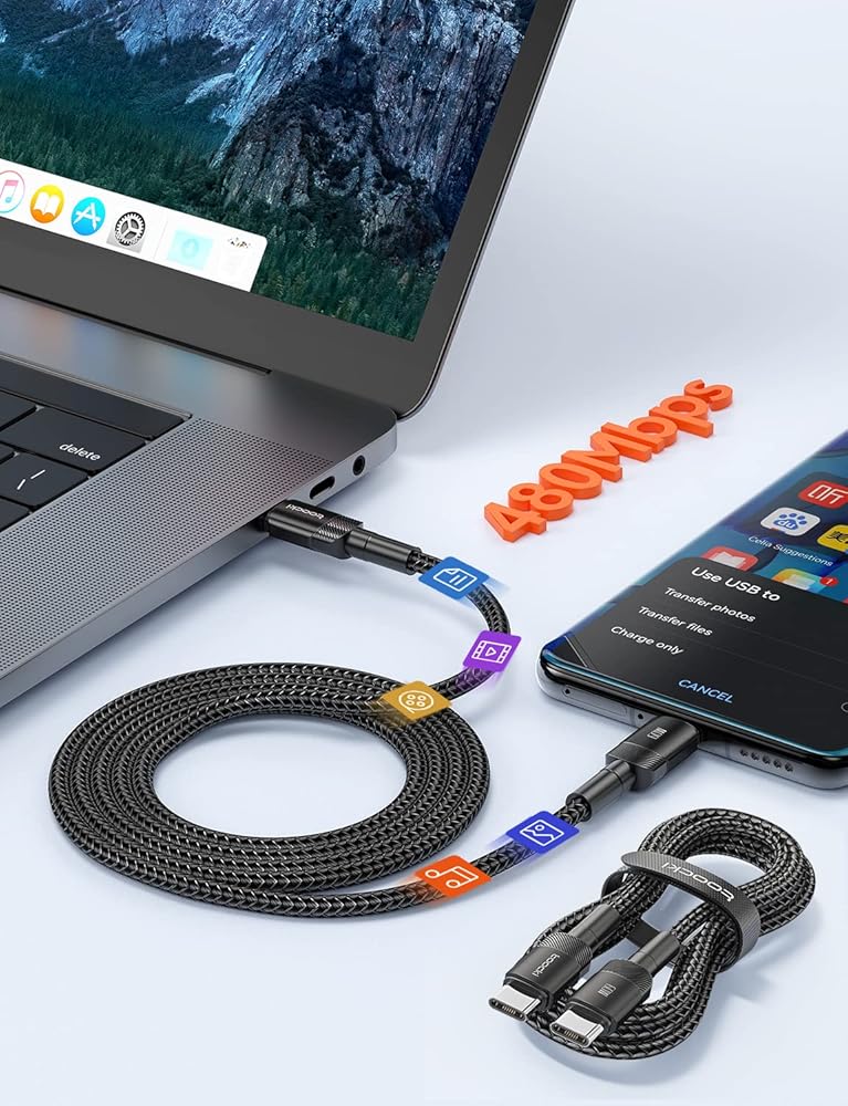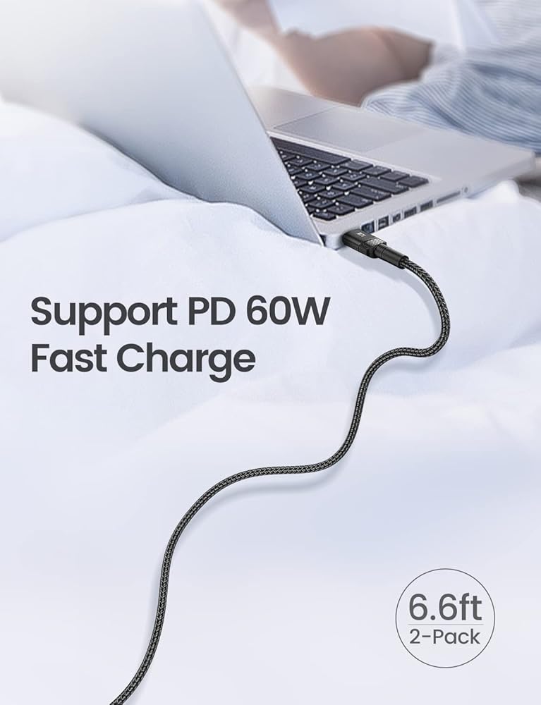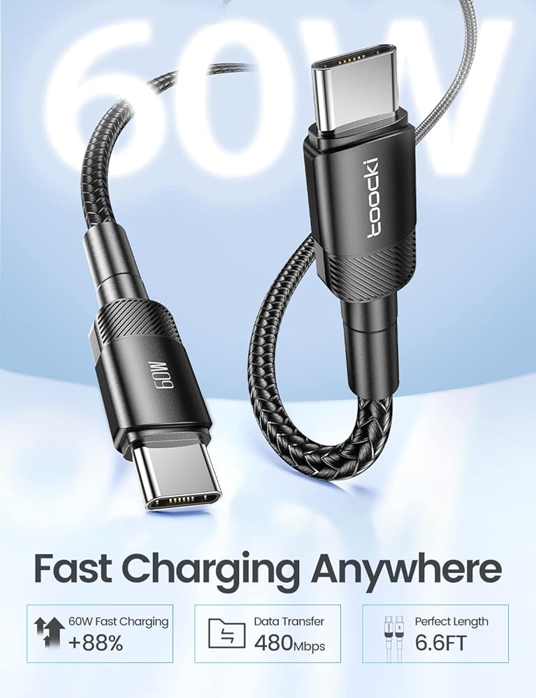 [كابل USB C إلى USB C] شحن عالي السرعة بقدرة 60 وات لجميع أجهزة USB-C الخاصة بك عند إقرانها بشاحن USB-C (60 وات=20 فولت * 3 أمبير). يمكنه التعرف على الأجهزة بذكاء ولكن سرعة الشحن الفعلية تعتمد على جهازك ومحول الطاقة الذي تستخدمه معه.