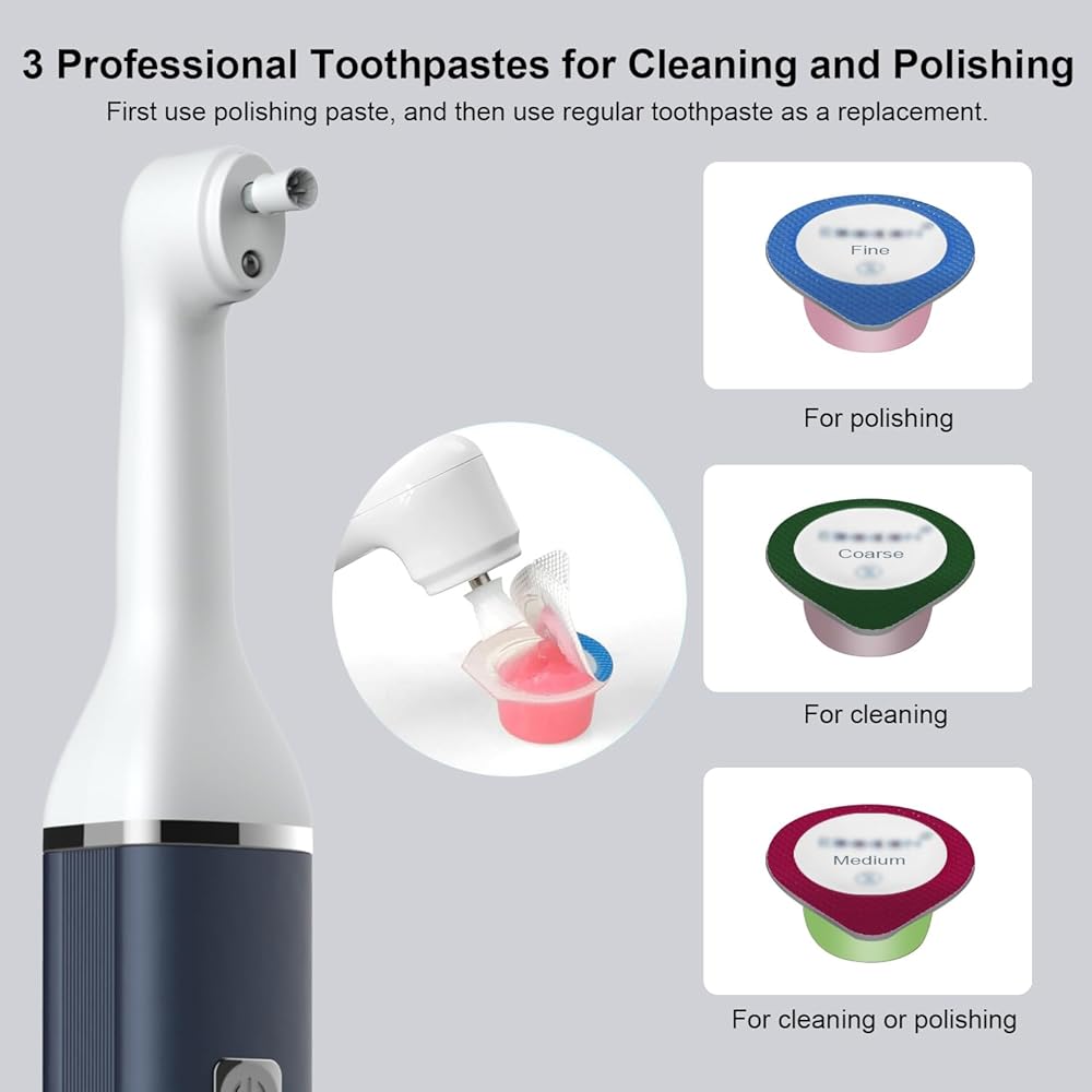 Tooth Polisher and Plaque Remover, Teeth Cleaning Tools for Cleaning and Polishing of Tooth, Dental Cleaning Tools for Brighten and Polish Teeth with 5 Brush Heads, 4 Speed Modes and 3 Polish Pastes