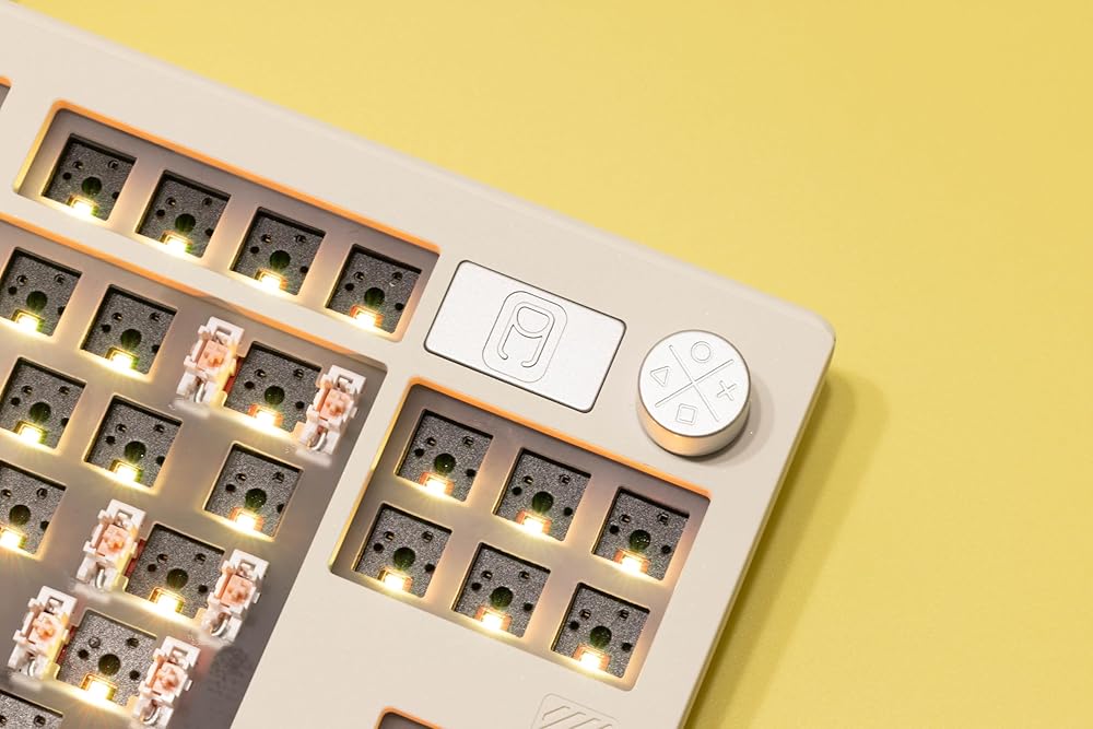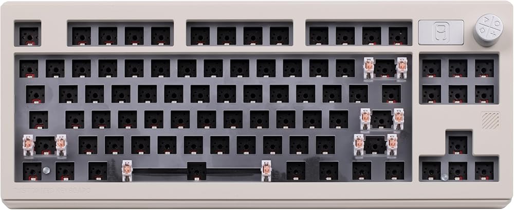 KEEBMONKEY WK870 Gasket Aluminum Hot-Swappable Remappable RGB Mechanical Keyboard Kit with Pre-Installed Stablizers Barebones, PC Plate with Foam and Dampening Pad Thock(White)