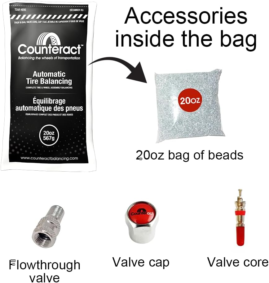 INCREASED TIRE LIFE - Counteract tire balancing beads reduce rolling resistance with centrifugal force, reducing and providing a more even wear across your tires *Counteract does not void any tire or wheel warranties