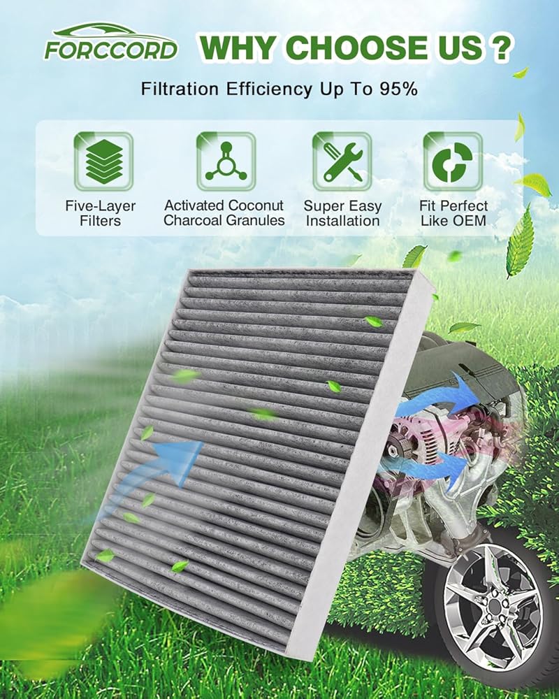 【5 Layers Newly Material】Compare with Standard cabin air filter, we adopts a newly upgraded large-capacity five-layer blue silk filter cloth+melt blown cloth, Double layer HEPA filter,which can remove 99.9% of harmful pollutants(dust, pollen,exhaust, etc).