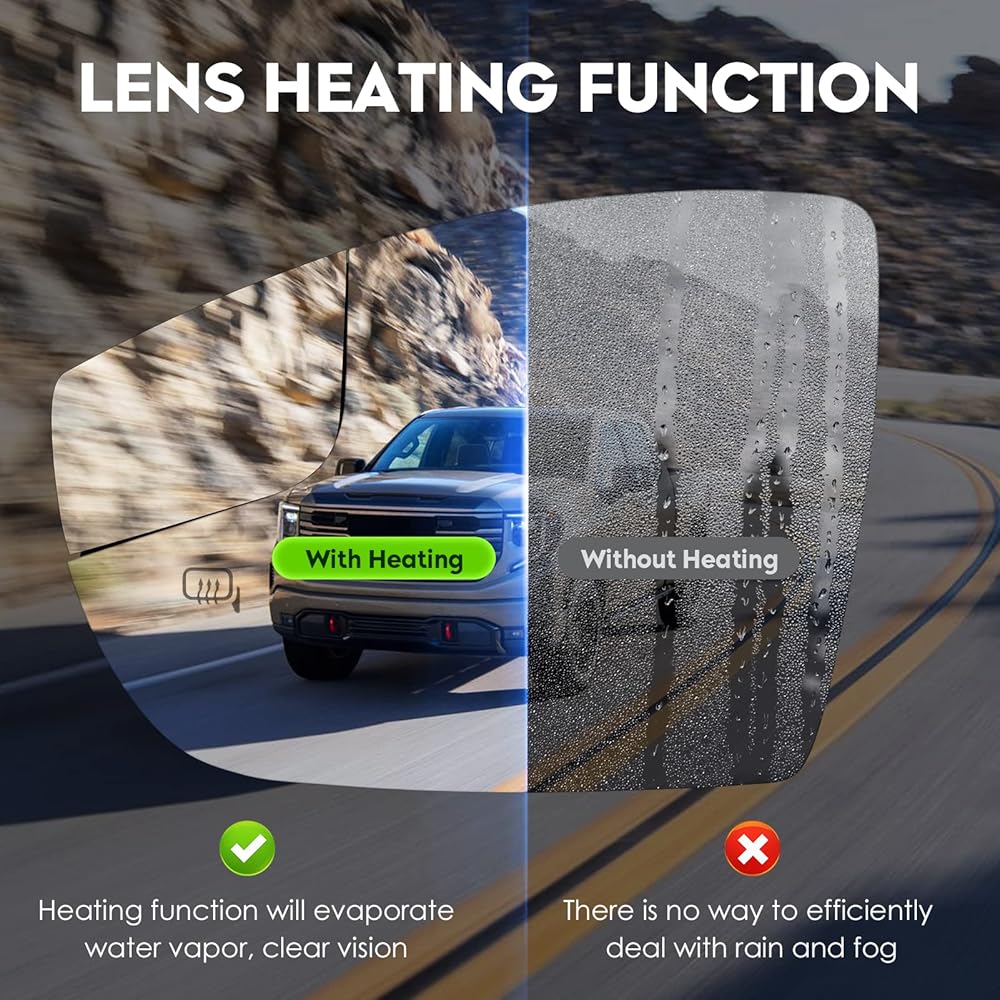 Quick Defogging: Made of ABS high-quality material, which provides clear visibility, stability and safety. driver side mirror has heating function, will not haze, which provide a clear vision to ensure driving safety, Especially suitable for rainy and snowy weather.
