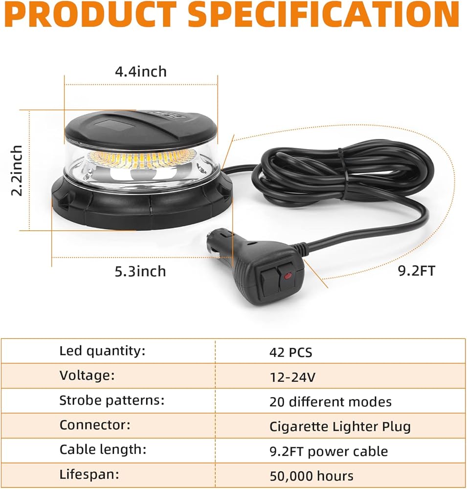 20 FLASHING MODES-This beacon lights have 20 selectable flash modes, you can choose the appropriate flashing mode according to the usage scenario help you face different emergency conditions.
