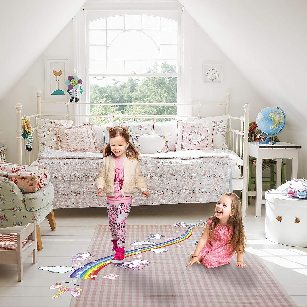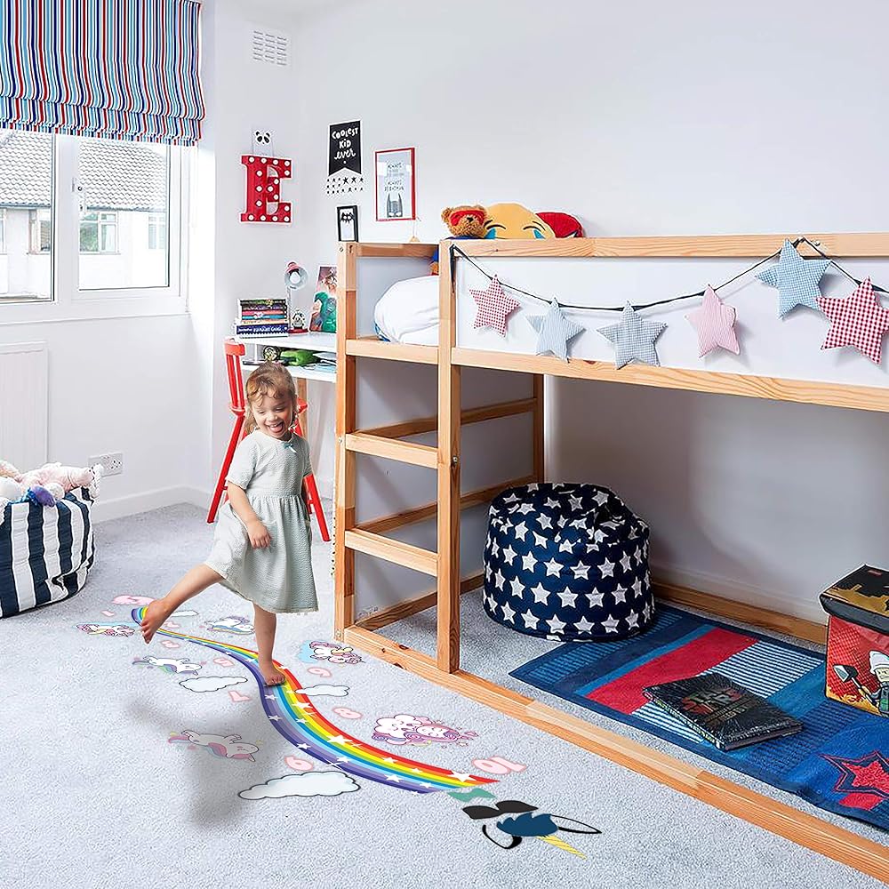 👸YOUR STUDENTS DREAMS COME TRUE - Unicorns become the source where all child's dreamy thoughts can bloom. Only playing hopscotch, toe to heel, jump, tiptoe, frog jump, hop, jump about unicorns and their magic can make their day brighter. LET BUY THESE UNICORN SENSORY PATH for your child's room.
