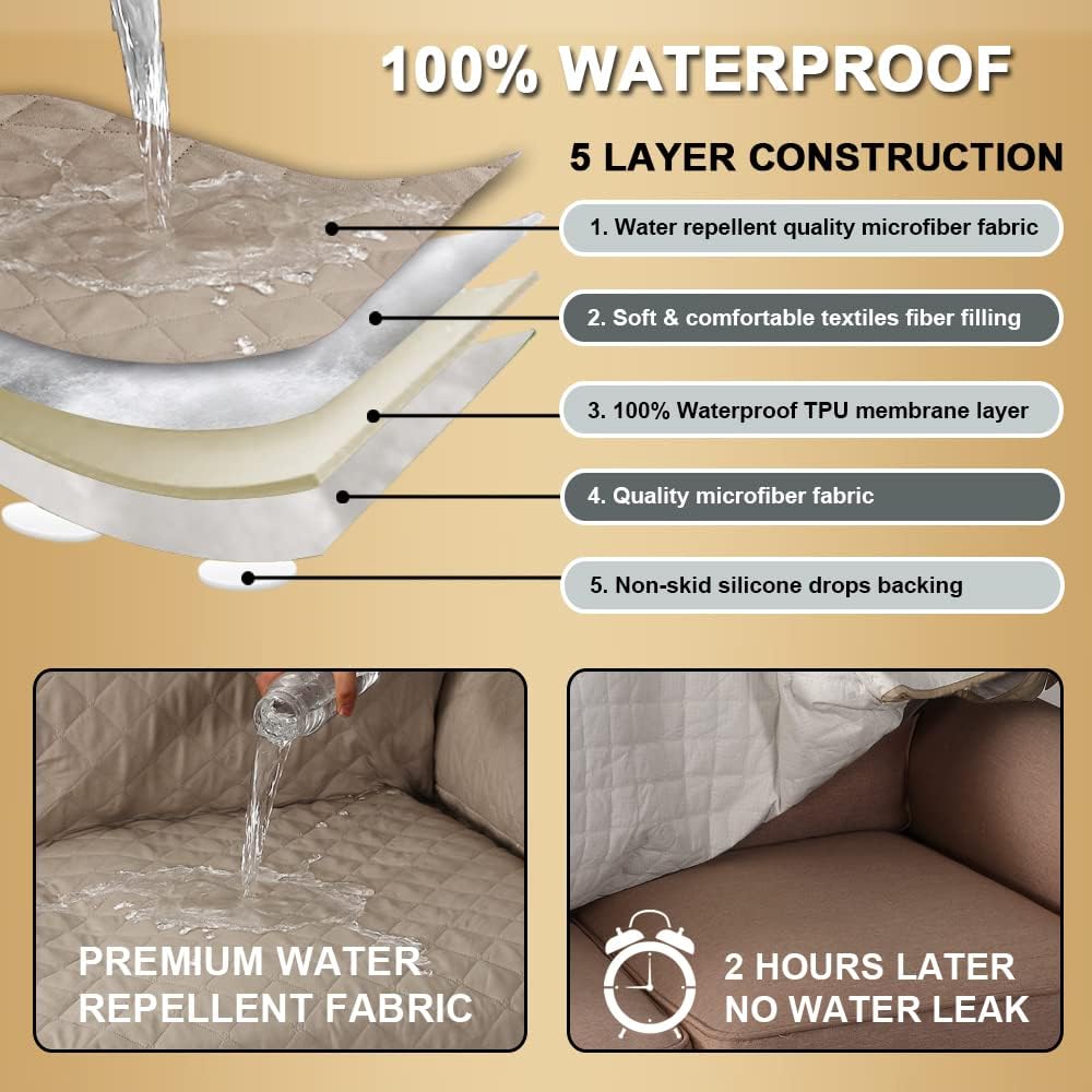 100% DUAL WATERPROOF: Adopting new waterproof technology,compound waterproof layer in the surface fabric achieve 100% waterproof, your couch will stay dry even in the face of liquid mishaps. The pet proof slip covers for sofas couches protects against pet hair, cats scratching, wear, ensuring your living room furniture stays in pristine condition.