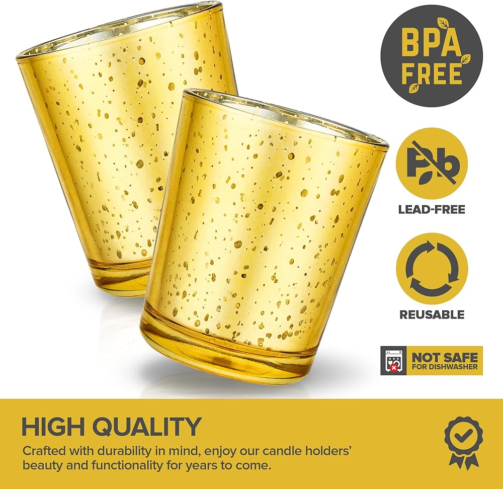 High Quality: Crafted with durability in mind, our mercury glass votive candle holders are made from thick BPA-free and lead-free glass and are designed to withstand regular use, allowing you to enjoy their beauty and functionality for years to come.