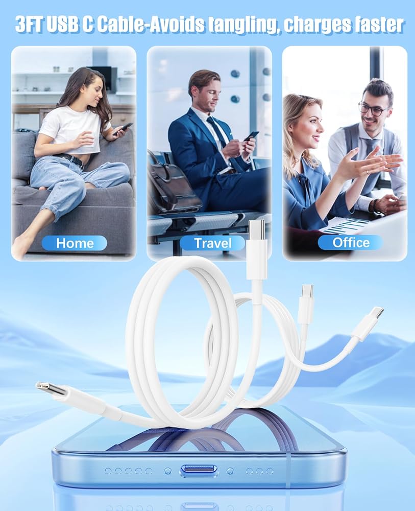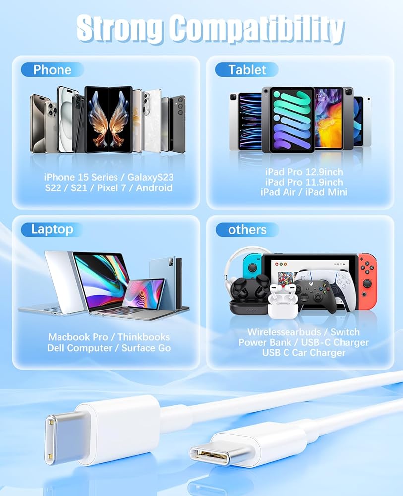 [Compatible with USB C Devices] It Ensures complete high speed charge and sync compatibility with USB C enabled devices, fast chargeing for iPhone 15/15 Plus,iPhone 15 Pro/15 Pro Max,iPad Pro 12.9 inch 5th/4th/3th Gen(2021/2020/2018), iPad Pro 11 inch 3rd/2rd/1rd Gen (2021/2020/2018), iPad Air 5th gen (2022), iPad Air 4th gen (2020), iPad Mini 6th Gen (2021).It also compatible with Samsung Galaxy S23/S22/S21/S21 Ultra/S21 Plus/note 20/S20/Note 10 /S8 S9 S10 S20 Plus and usb c power bank.