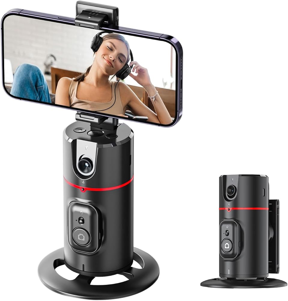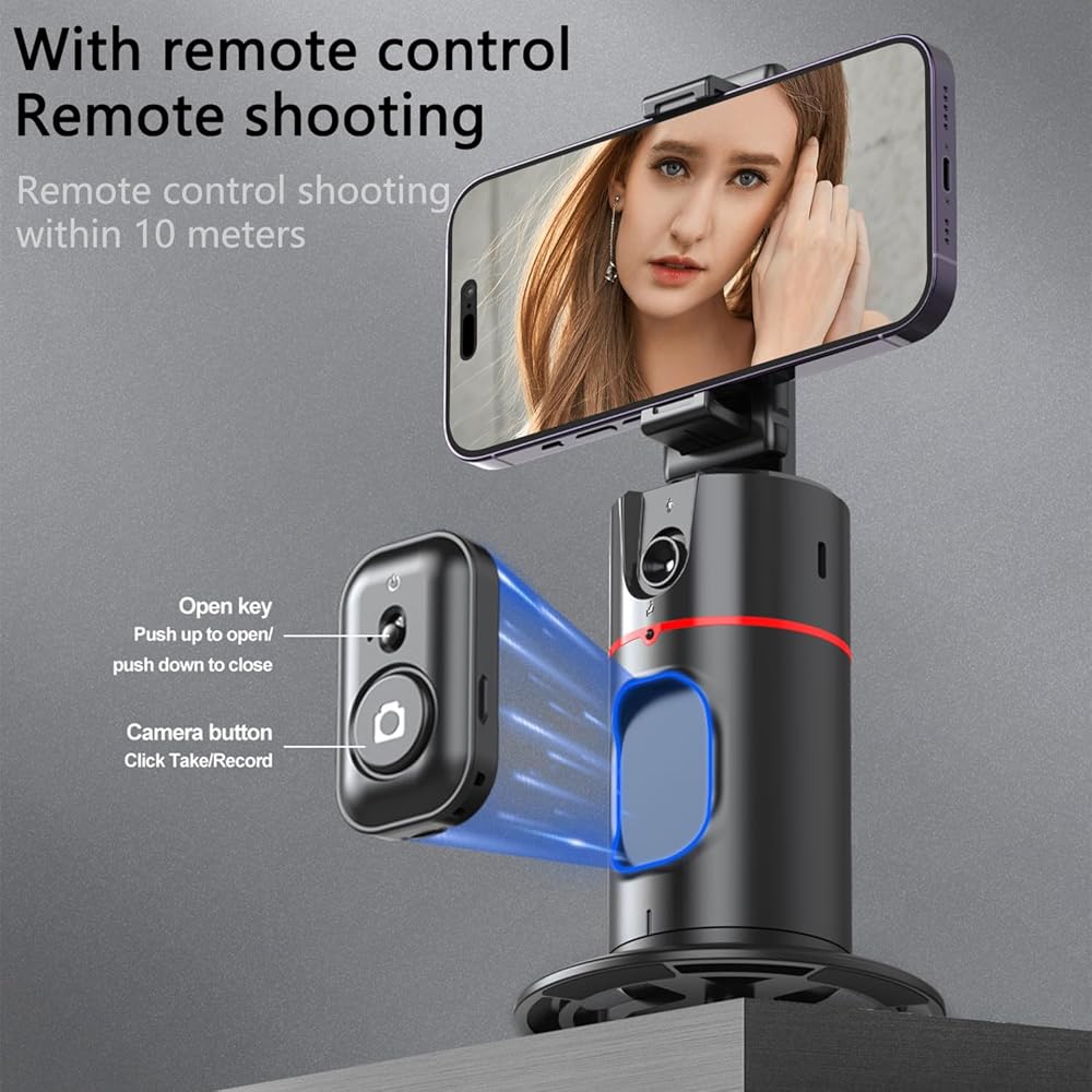 【Folding Tracking Tripod & Detachable Remote】The 360 face following tripod can choose the horizontal or vertical camera mode freely adjust the clamp and rotate 360° for more diverse shooting. Rotating tripod with a detachable remote extremely portable and stylish.