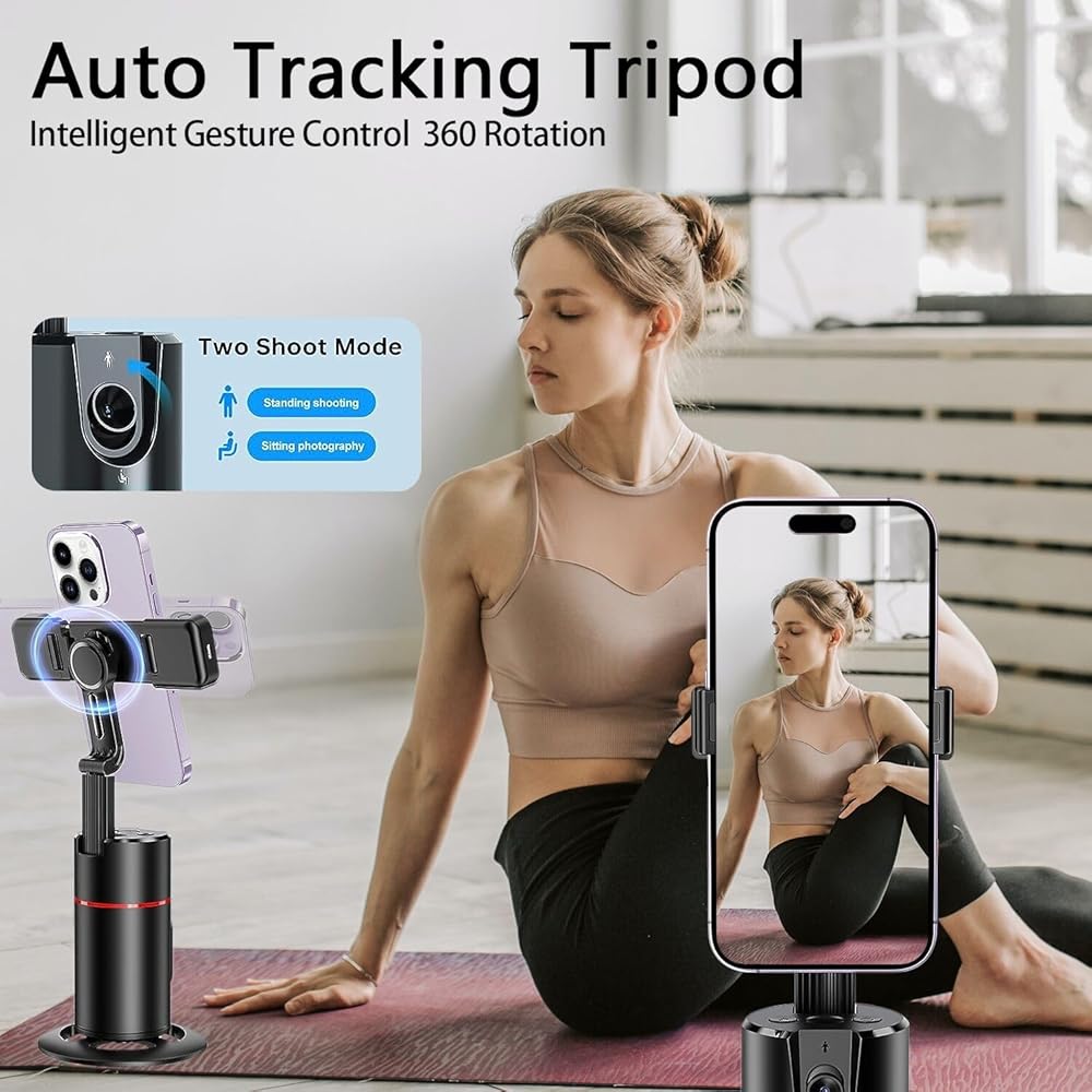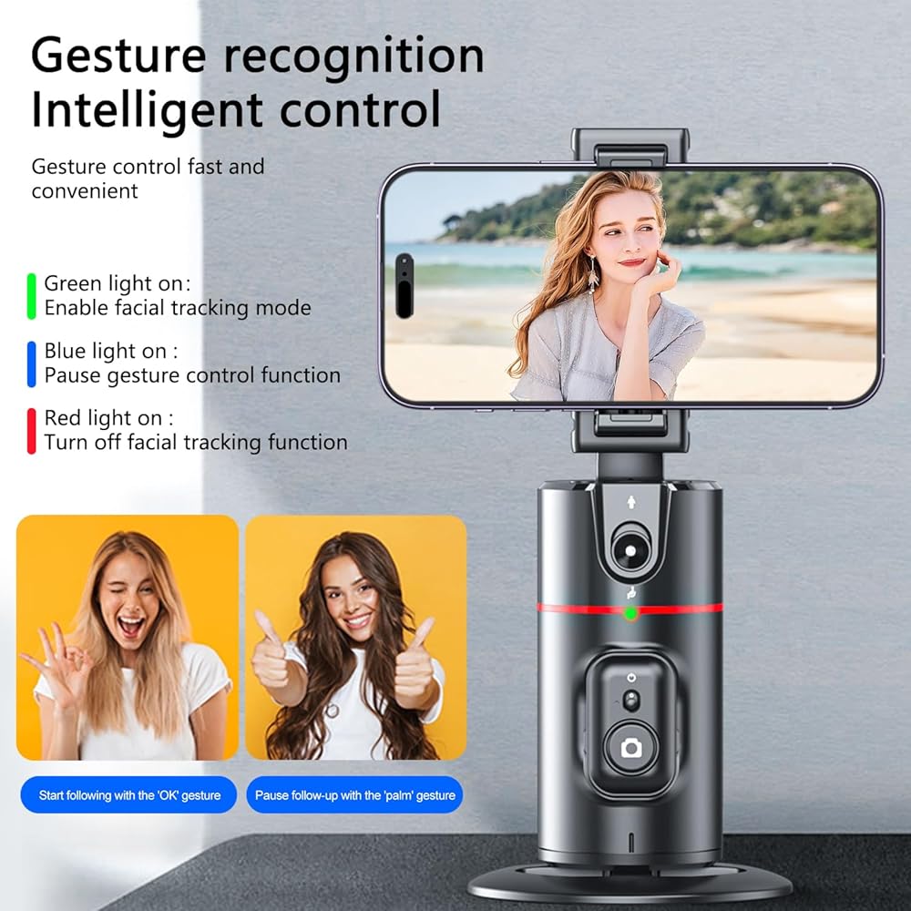 【Updated Intelligent Tracking Phone Holder】Auto Face Tracking Tripod with built-in camera and 360 rotation automatic track has AI intelligent recognition technology, The highly sensitive design automatically follows and rotates based on face and body movement.