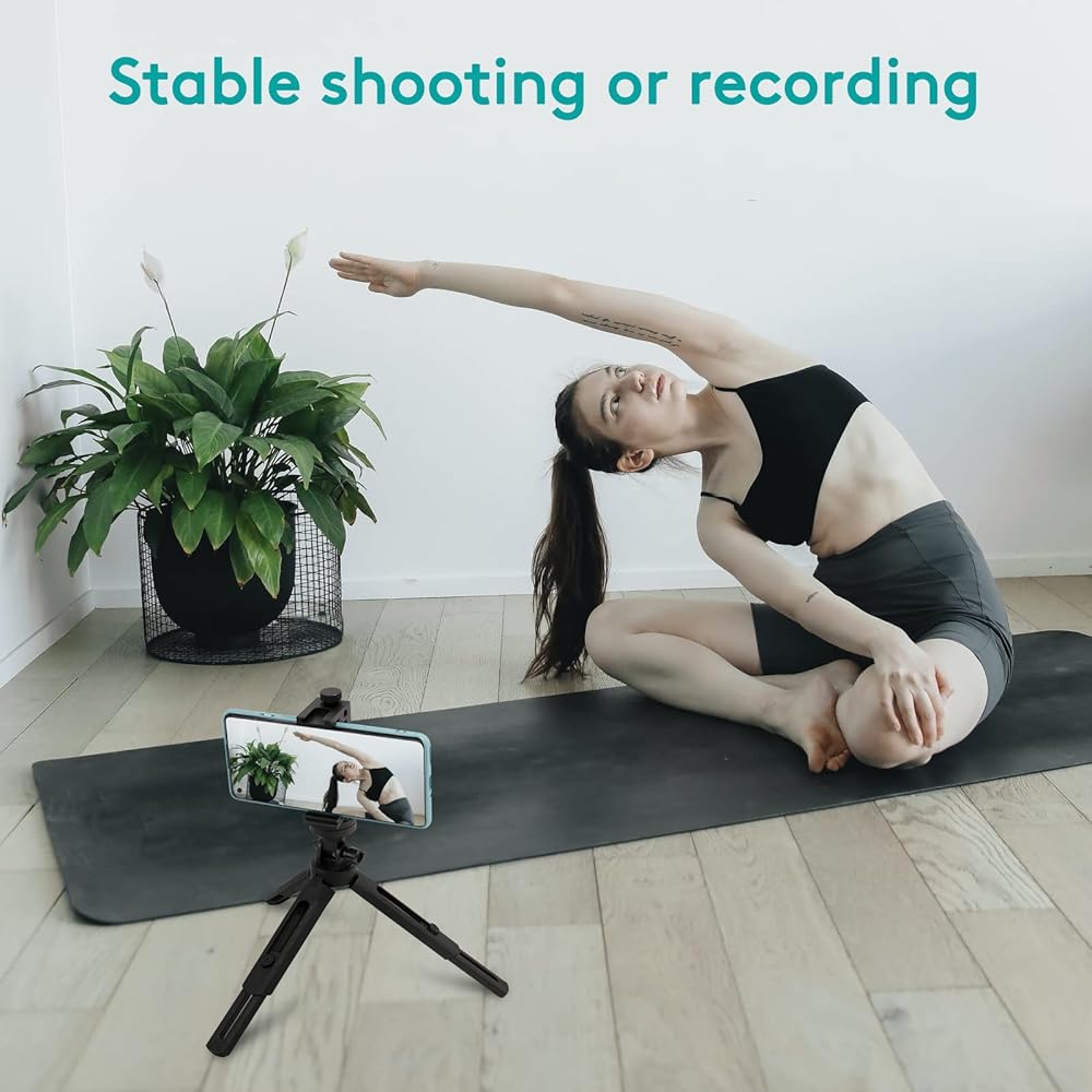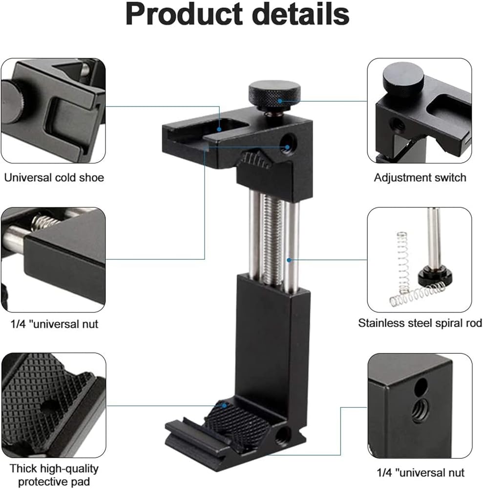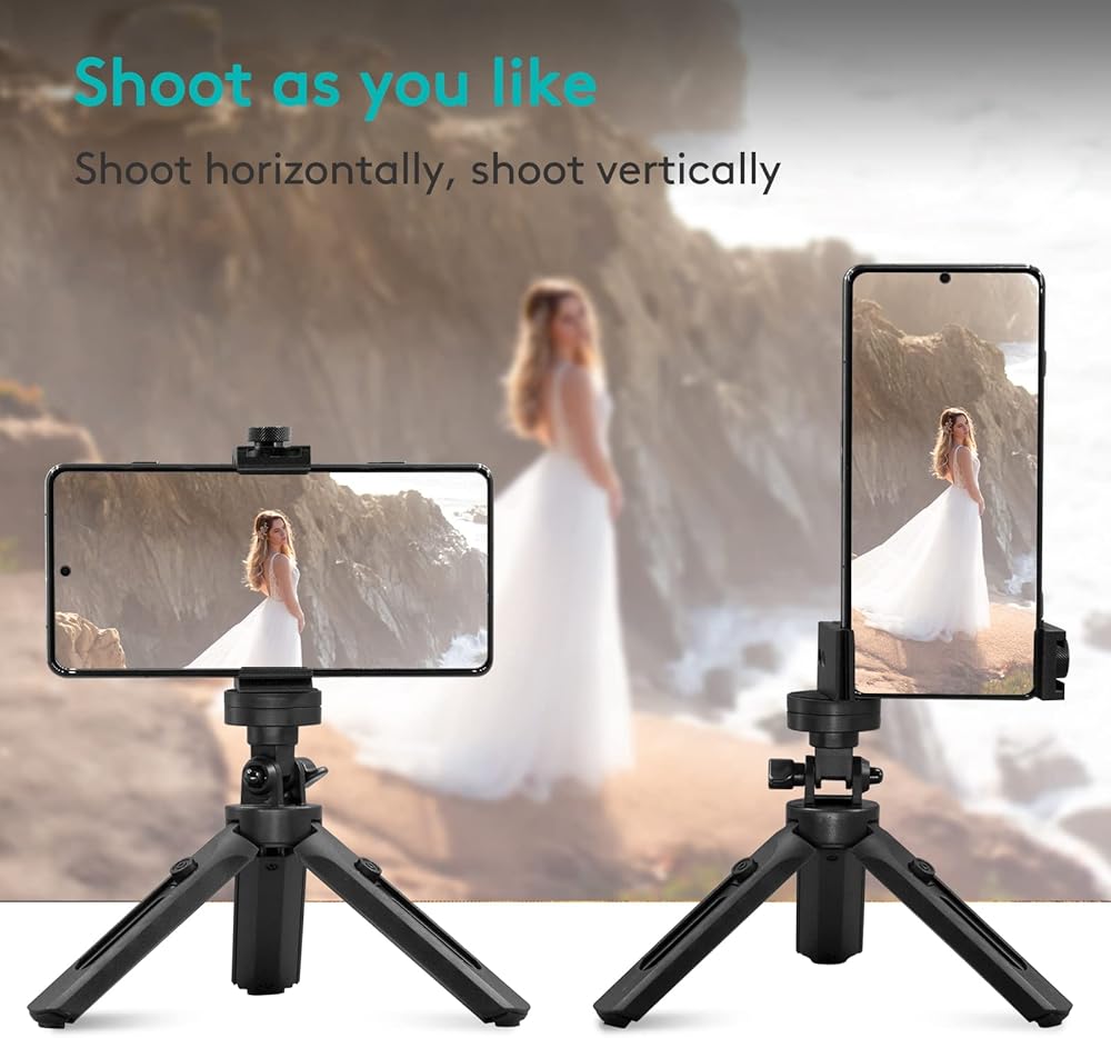 Phone Tripod, Metal Phone Holder with Extendable Lightweight Mini Stand, Universal Metal Adjustable Clamp for Video Recording, Selfies, Live Streaming, Compatible with Smartphone & Camera
