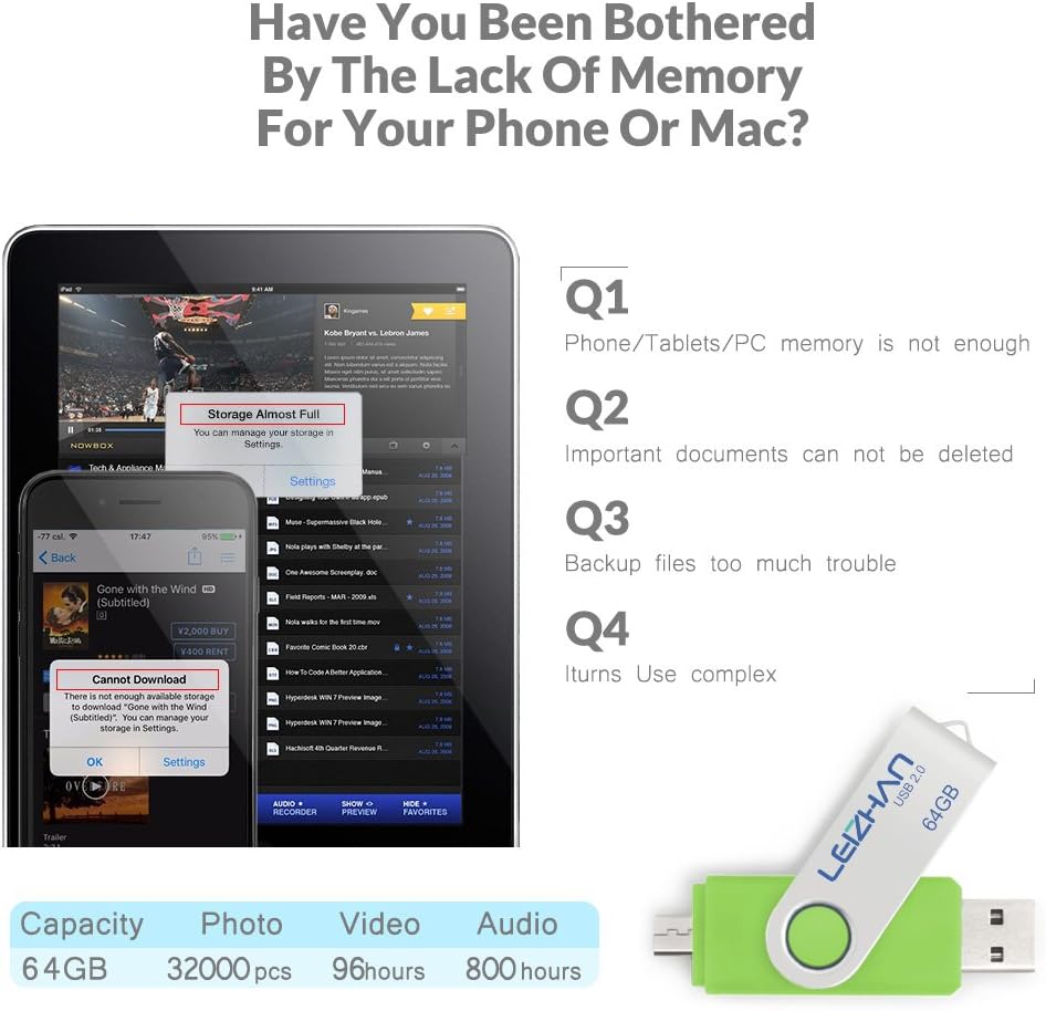✔ Package Contents: 1 * 64GB usb 3.0 photo stick for android and our best wishes! Noted: instruction is on the package and Description.
